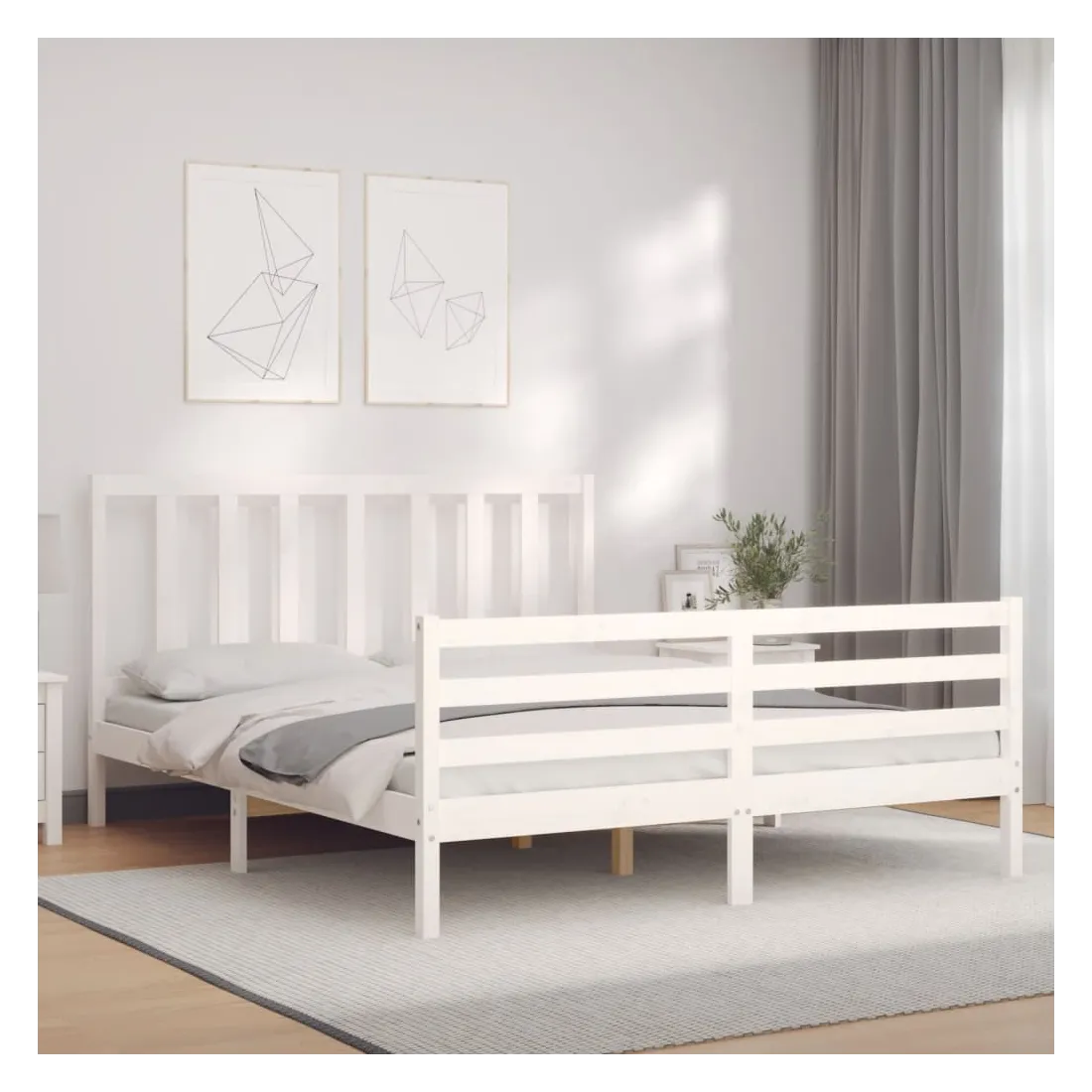 Cadre de lit sans matelas blanc 160x200 cm bois de pin massif