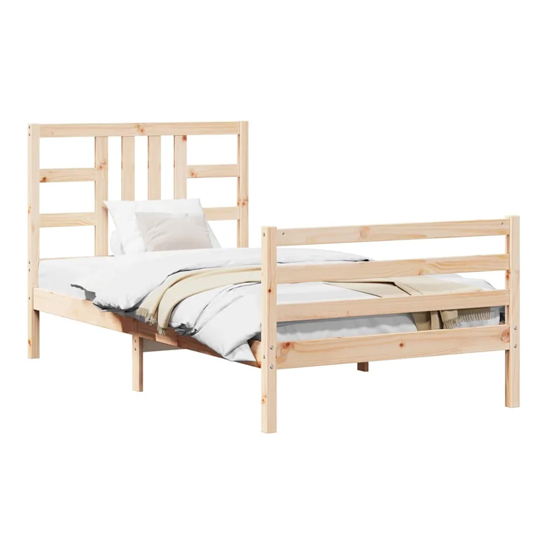 vidaXLProfitez d'une bonne nuit de sommeil dans ce cadre de lit en bois ! Il sera un supplément pratique et décoratif à votre intérieur. Matériau durable : le bois de pin massif est un matériau naturel magnifique. Le bois de pin a un grain droit et les nœuds donnent au matériau son aspect caractéristique et rustique. Fabriqué en pin massif, ce lit est robuste et durable.Lattes en contreplaqué : les lattes en contreplaqué assurent une bonne répartition du poids, garantissant à votre matelas le soutien et la respirabilité dont il a tant besoin.Tête de lit et pied de lit fonctionnels : la tête et le pied de lit du lit en bois peuvent maintenir votre matelas en place. De plus, la tête de lit vous offre un excellent soutien du dos lorsque vous vous asseyez dans le lit pour lire ou regarder la télévision. Bon à savoir :Un matelas n'est pas inclus avec ce lit. Nous offrons une sélection variée de matelas. Vous pouvez consulter notre boutique pour trouver un matelas assorti.