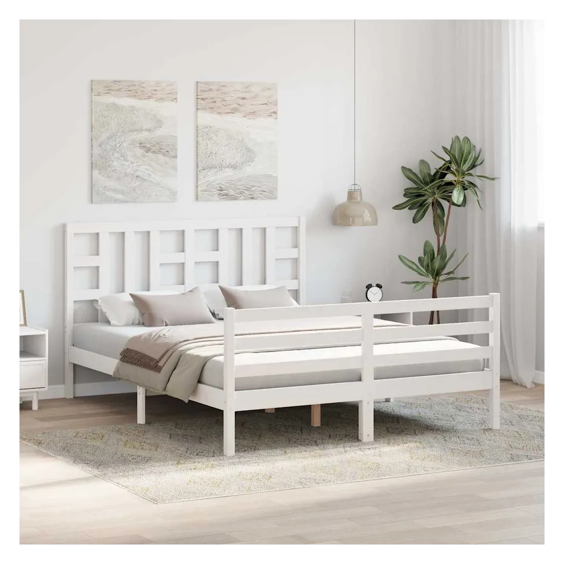 Profitez d'une bonne nuit de sommeil dans ce cadre de lit en bois ! Il sera un supplément pratique et décoratif à votre intérieur. Matériau durable : le bois de pin massif est un matériau naturel magnifique. Le bois de pin a un grain droit et les nœuds donnent au matériau son aspect caractéristique et rustique. Fabriqué en pin massif, ce lit est robuste et durable.Lattes en contreplaqué : les lattes en contreplaqué assurent une bonne répartition du poids, garantissant à votre matelas le soutien et la respirabilité dont il a tant besoin.Tête de lit et pied de lit fonctionnels : la tête et le pied de lit du lit en bois peuvent maintenir votre matelas en place. De plus, la tête de lit vous offre un excellent soutien du dos lorsque vous vous asseyez dans le lit pour lire ou regarder la télévision. Bon à savoir :Un matelas n'est pas inclus avec ce lit. Nous offrons une sélection variée de matelas. Vous pouvez consulter notre boutique pour trouver un matelas assorti.