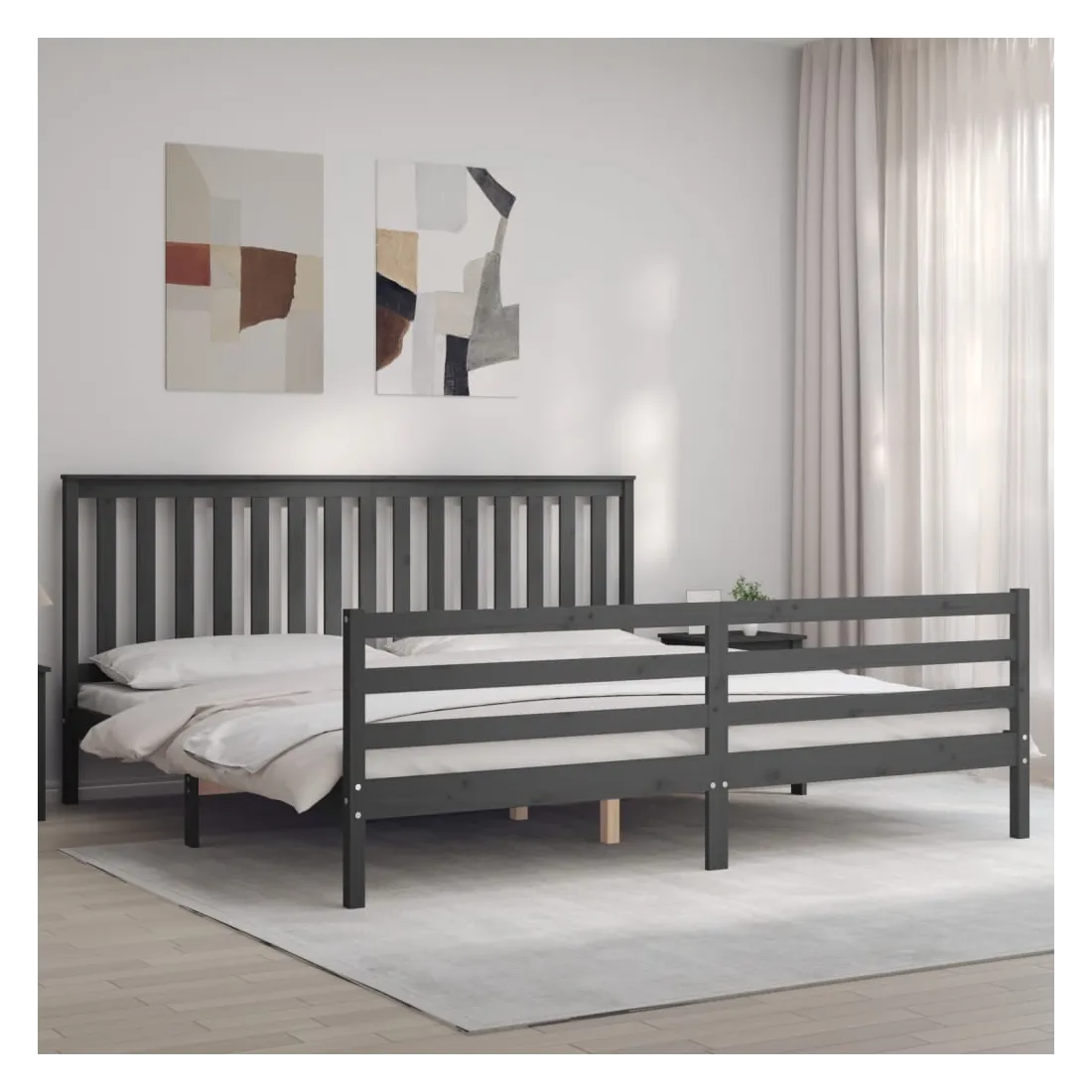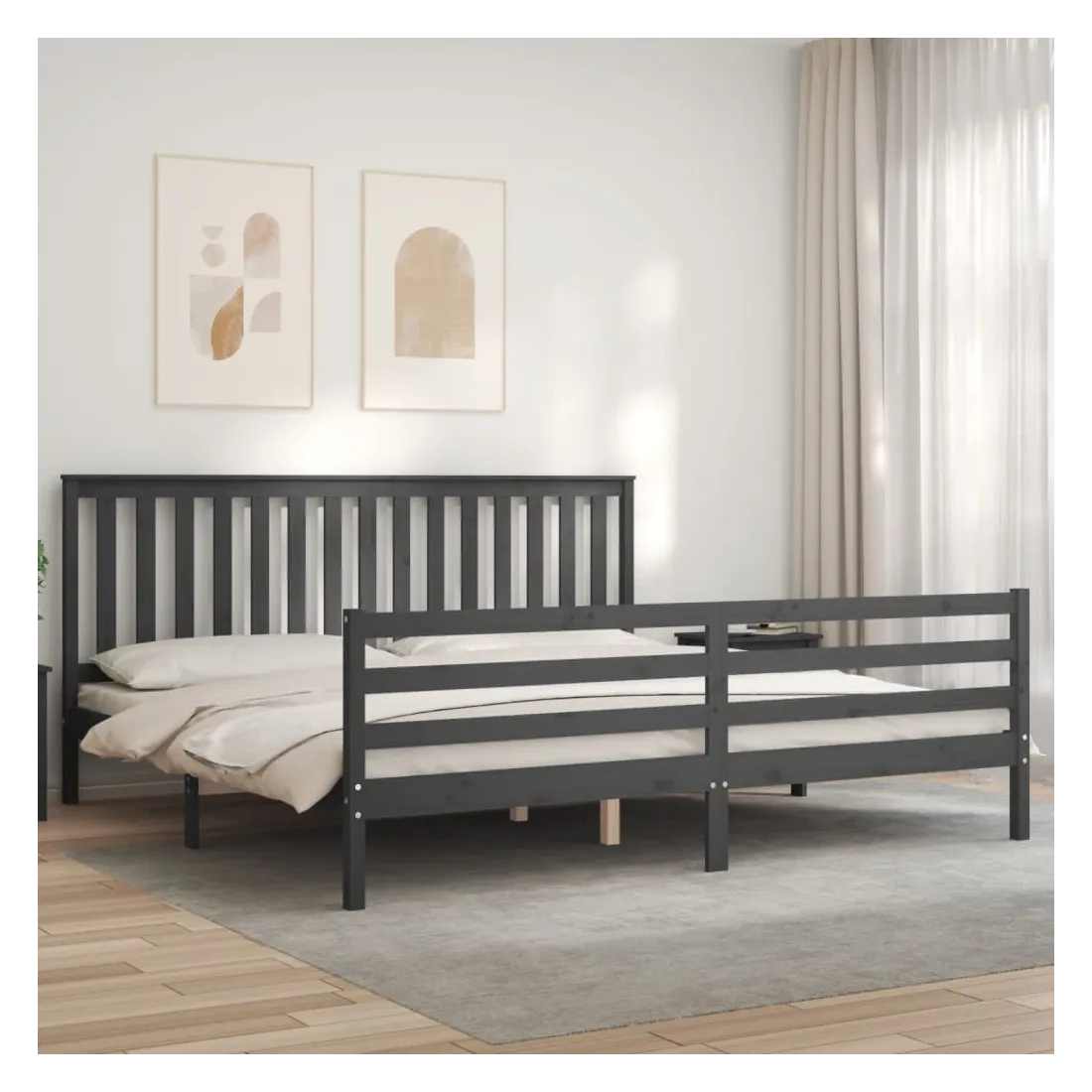 Cadre de lit sans matelas gris 200x200 cm bois massif
