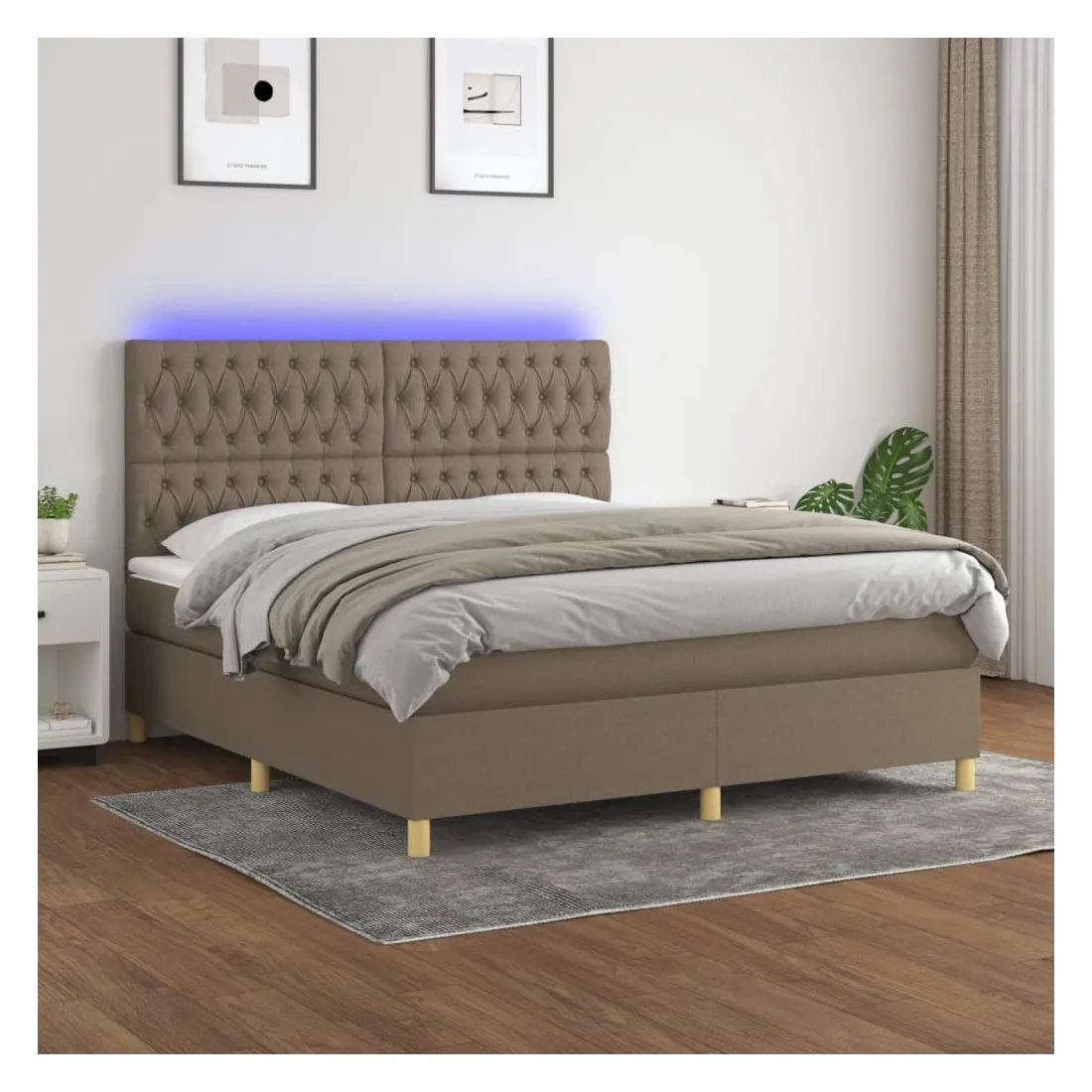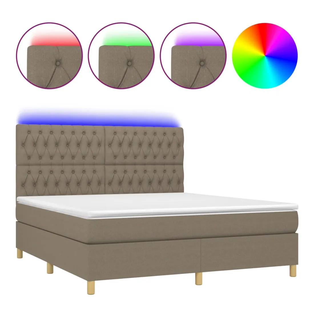 Utilisez ce sommier tapissier avec matelas et LED pour profiter d'un sommeil réparateur ! C'est le point central de votre chambre à coucher. Tissu durable : le tissu présente un aspect simple et épuré, et il est respirant et durable.Tête de lit pratique : la tête de lit est réglable en hauteur selon vos préférences. La tête de lit vous offre un excellent soutien du dos lorsque vous êtes assis dans votre lit pour lire ou regarder la télévision.Bande LED colorée : apportez de l'éclairage dans l'obscurité avec des lumières LED colorées !Matelas à ressorts ensachés : le ressort ensaché individuel intégré est connu pour sa très haute qualité tout en assurant un haut niveau de durabilité et d'adaptabilité. Il peut absorber efficacement le bruit et les chocs causés par les sauts et les rotations.Protège-matelas doux pour la peau : le protège-matelas est recouvert d'un tissu résistant et doux pour la peau, ce qui le rend souple et confortable. Remarque :Pour des raisons d'hygiène, le matelas ne peut pas être retourné si l'emballage est retiré ou ouvert.Seule la partie avec un symbole de ciseaux peut être coupée et seule la partie avec l'USB continuera à fonctionner comme avant.Chaque produit est livré avec un manuel de montage dans la boîte pour un montage facile.Ce produit est doté d'un connecteur USB, mais la source d'alimentation certifiée de USB 5V n'est pas incluse.