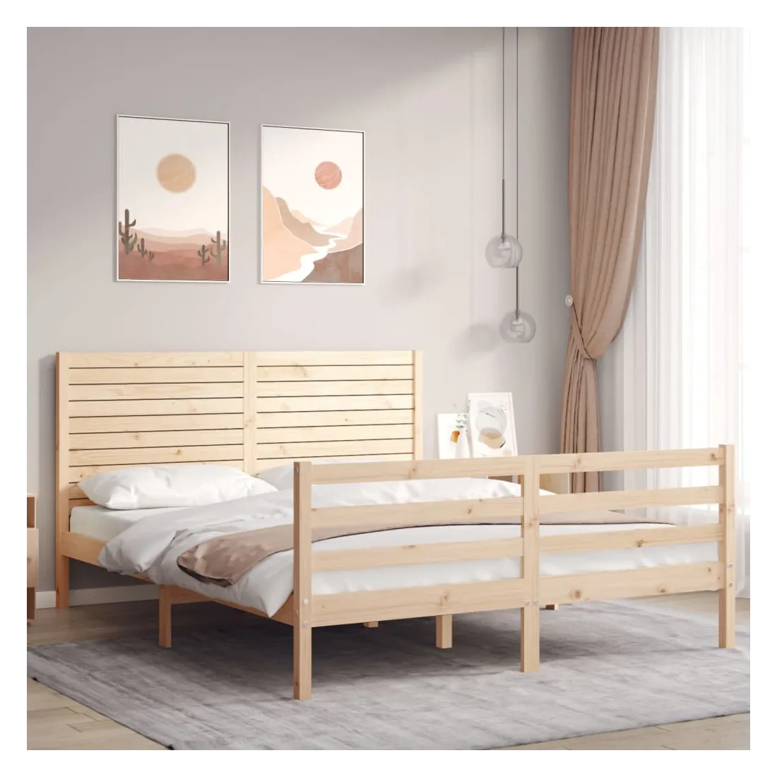 Profitez d'une bonne nuit de sommeil dans ce cadre de lit en bois ! Il sera un supplément pratique et décoratif à votre intérieur. Matériau durable : le bois de pin massif est un matériau naturel magnifique. Le bois de pin a un grain droit et les nœuds donnent au matériau son aspect caractéristique et rustique. Fabriqué en pin massif, ce lit est robuste et durable.Lattes en contreplaqué : les lattes en contreplaqué assurent une bonne répartition du poids, garantissant à votre matelas le soutien et la respirabilité dont il a tant besoin.Tête de lit et pied de lit fonctionnels : la tête et le pied de lit du lit en bois peuvent maintenir votre matelas en place. De plus, la tête de lit vous offre un excellent soutien du dos lorsque vous vous asseyez dans le lit pour lire ou regarder la télévision. Bon à savoir : Un matelas n'est pas inclus avec ce lit. Nous offrons une sélection variée de matelas. Vous pouvez consulter notre boutique pour trouver un matelas assorti.Certaines pièces de tête de lit sont emballées dans les cartons du cadre de lit en raison du manque d’espace.