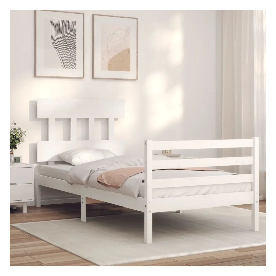 Cadre de lit sans matelas blanc 100x200 cm bois massif