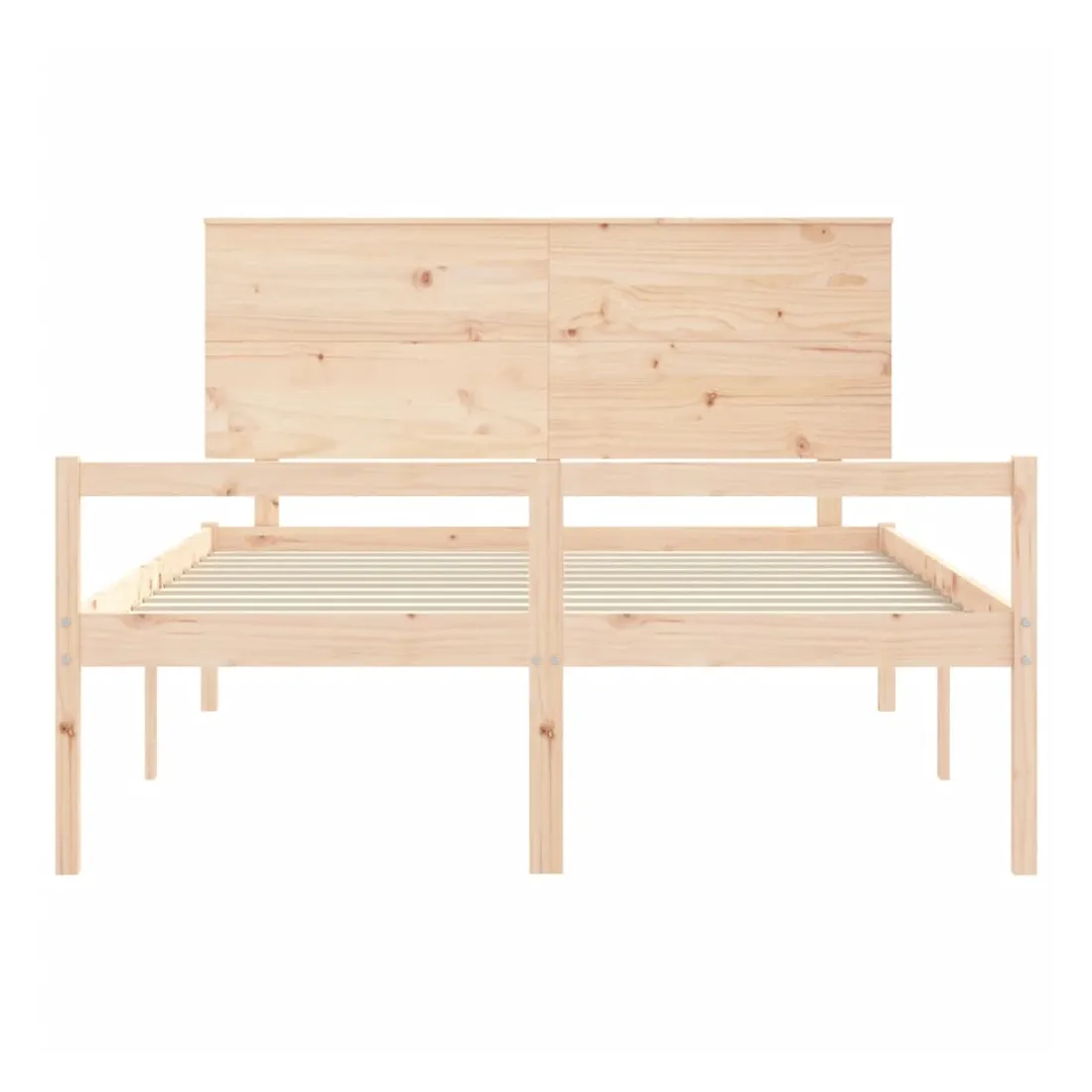 Profitez d'une bonne nuit de sommeil dans ce lit pour personne âgée en bois! Il sera un supplément pratique et décoratif à votre intérieur. Bois de pin massif : le bois de pin massif est un matériau naturel magnifique. Traitez la surface avec de l'huile, de la cire, de la laque ou une finition vitrée pour obtenir une surface plus résistante et un nettoyage facile. Le bois de pin a un grain droit et les nœuds donnent au matériau son aspect caractéristique et rustique.Adapté aux personnes âgées : le cadre de lit est facile à monter et à descendre pour les personnes âgées grâce à sa hauteur d'assise de 45 cm.Espace de rangement supplémentaire : le lit dispose d'un espace supplémentaire en dessous pour ranger des boîtes afin d'organiser vos vêtements, jouets ou couettes.Lattes robustes : les lattes de contreplaqué assurent une bonne répartition du poids, garantissant que le matelas reste en place à chaque torsion de votre corps pendant le sommeil.Tête de lit et pied de lit fonctionnels : la tête et le pied de lit du lit en bois peuvent maintenir votre matelas en place. De plus, la tête de lit vous offre un excellent soutien du dos lorsque vous vous asseyez dans le lit pour lire ou regarder la télévision. Bon à savoir :Un matelas n'est pas inclus avec ce lit. Nous offrons une sélection variée de matelas. Vous pouvez consulter notre boutique pour trouver un matelas assorti.