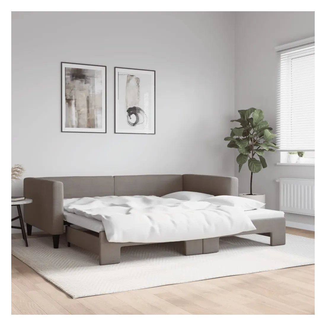 Ce lit de repos 2 en 1 avec lit gigogne, servant à la fois de canapé et de lit, constitue un supplément pratique et accrocheur à votre salon ou chambre à coucher. Lit de repos polyvalent : le canapé-lit fonctionne comme un canapé pendant la journée et se transforme facilement en lit double la nuit en retirant le lit gigogne, offrant une solution pratique pour accueillir des invités et maximiser l'espace. Tissu durable : lit d'appoint est en tissu. Le tissu présente un aspect simple et épuré tout en restant respirant et durable. Construction solide : la structure en bois et en métal du lit assure robustesse et stabilité. Bon à savoir :Les matelas ne sont pas inclus avec ce lit de repos. Nous proposons une sélection variée de matelas. Vous pouvez consulter notre boutique pour les matelas assortis.