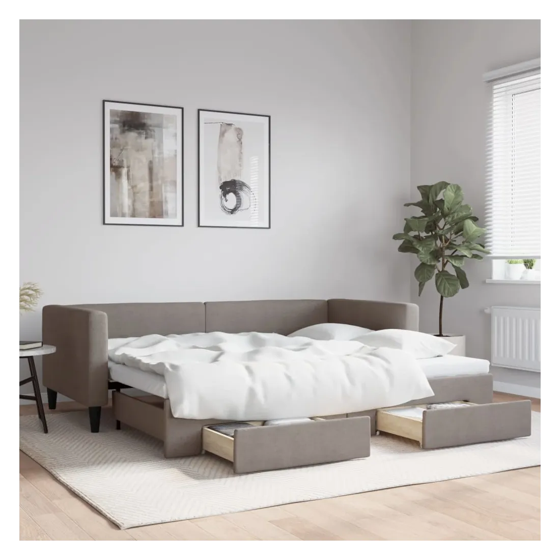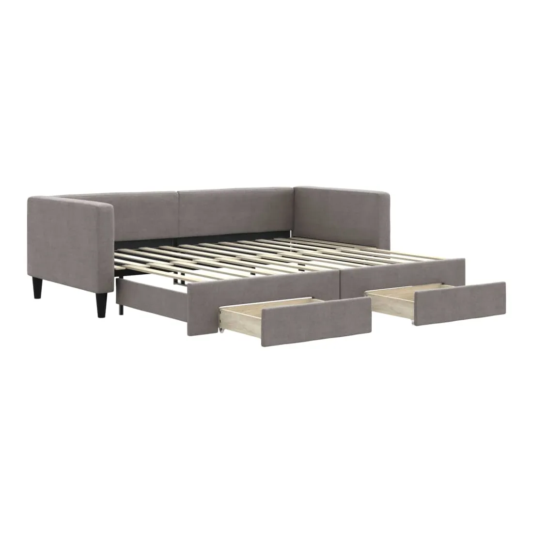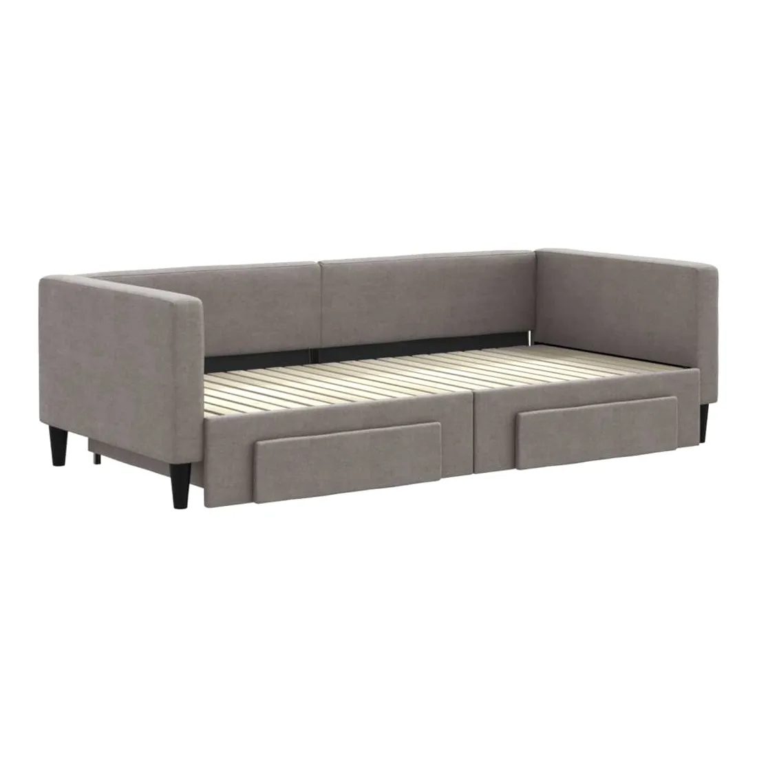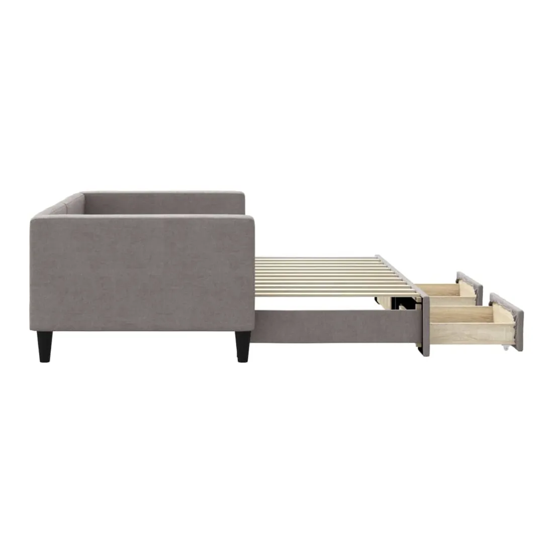 Ce lit de repos 2 en 1 avec lit gigogne, servant à la fois de canapé et de lit, constitue un supplément pratique et accrocheur à votre salon ou chambre à coucher. Lit de repos polyvalent : le canapé-lit fonctionne comme un canapé pendant la journée et se transforme facilement en lit double la nuit en retirant le lit gigogne, offrant une solution pratique pour accueillir des invités et maximiser l'espace. Grand espace de rangement : ce lit d'appoint dispose de deux tiroirs à roulettes qui offrent suffisamment d'espace pour ranger vos vêtements, chaussettes, jouets, coussins, etc. Tissu durable et construction solide : ce canapé-lit a une structure robuste en bois et en métal et est recouvert d'un tissu durable et confortable. Bon à savoir :Les matelas ne sont pas inclus avec ce lit de repos. Nous proposons une sélection variée de matelas. Vous pouvez consulter notre boutique pour les matelas assortis.