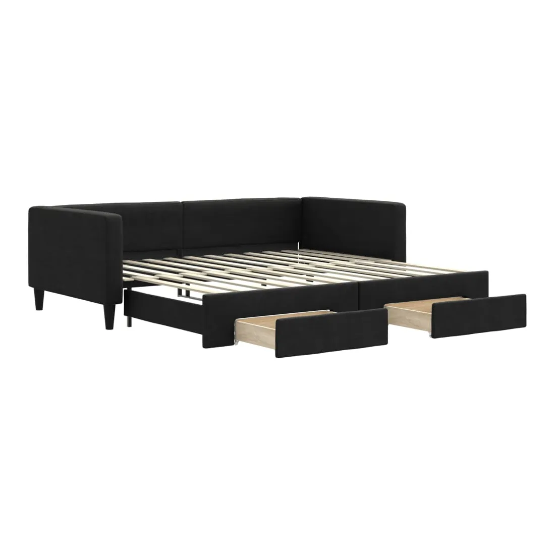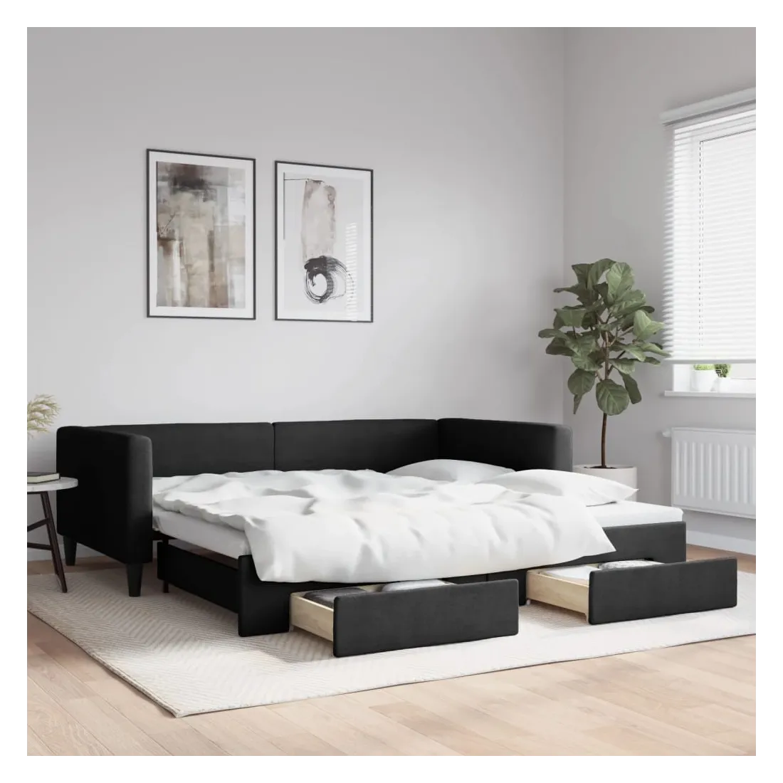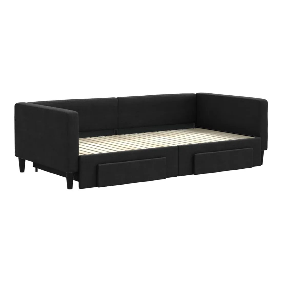 Ce lit de repos 2 en 1 avec lit gigogne, servant à la fois de canapé et de lit, constitue un supplément pratique et accrocheur à votre salon ou chambre à coucher. Lit de repos polyvalent : le canapé-lit fonctionne comme un canapé pendant la journée et se transforme facilement en lit double la nuit en retirant le lit gigogne, offrant une solution pratique pour accueillir des invités et maximiser l'espace. Grand espace de rangement : ce lit d'appoint dispose de deux tiroirs à roulettes qui offrent suffisamment d'espace pour ranger vos vêtements, chaussettes, jouets, coussins, etc. Tissu durable et construction solide : ce canapé-lit a une structure robuste en bois et en métal et est recouvert d'un tissu durable et confortable. Bon à savoir :Les matelas ne sont pas inclus avec ce lit de repos. Nous proposons une sélection variée de matelas. Vous pouvez consulter notre boutique pour les matelas assortis.