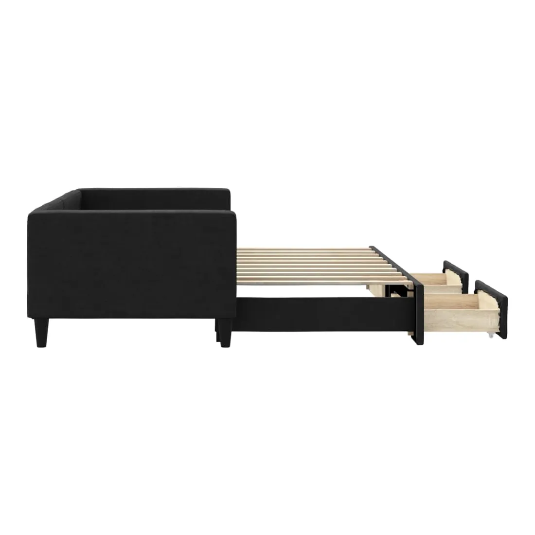 Ce lit de repos 2 en 1 avec lit gigogne, servant à la fois de canapé et de lit, constitue un supplément pratique et accrocheur à votre salon ou chambre à coucher. Lit de repos polyvalent : le canapé-lit fonctionne comme un canapé pendant la journée et se transforme facilement en lit double la nuit en retirant le lit gigogne, offrant une solution pratique pour accueillir des invités et maximiser l'espace. Grand espace de rangement : ce lit d'appoint dispose de deux tiroirs à roulettes qui offrent suffisamment d'espace pour ranger vos vêtements, chaussettes, jouets, coussins, etc. Tissu durable et construction solide : ce canapé-lit a une structure robuste en bois et en métal et est recouvert d'un tissu durable et confortable. Bon à savoir :Les matelas ne sont pas inclus avec ce lit de repos. Nous proposons une sélection variée de matelas. Vous pouvez consulter notre boutique pour les matelas assortis.
