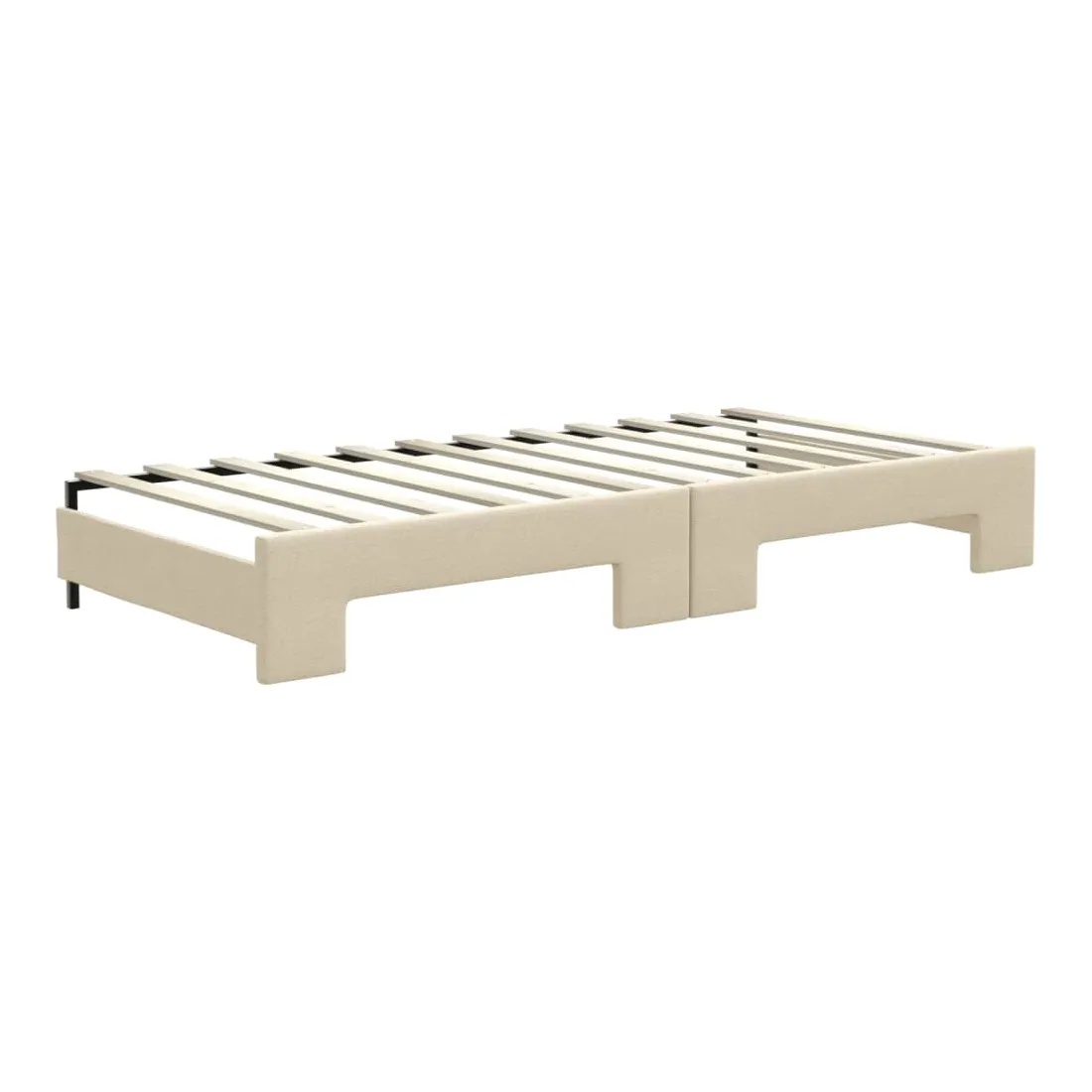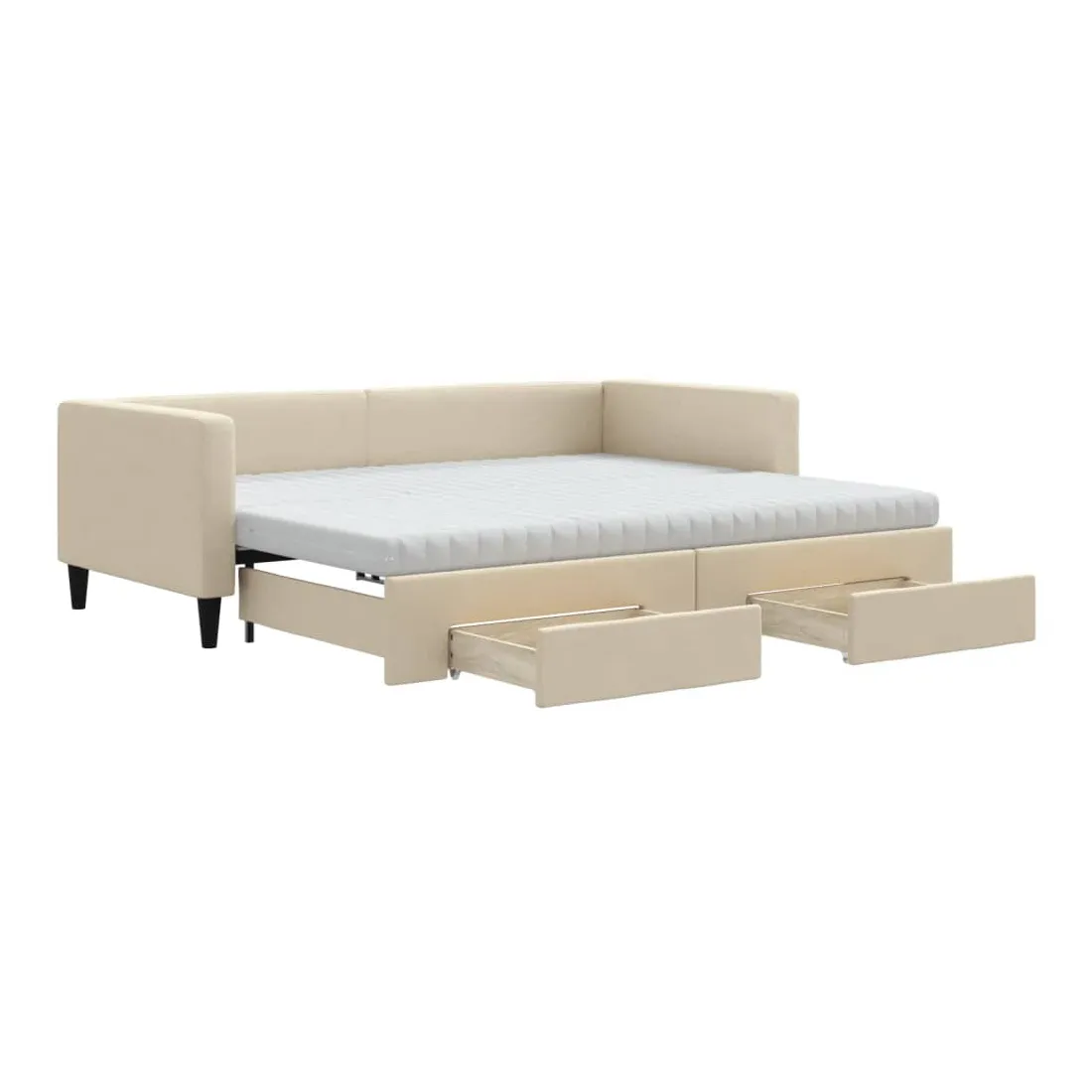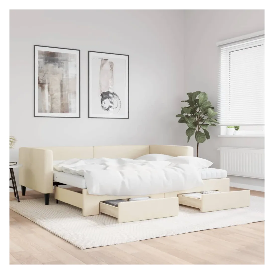 Ce lit de repos 2 en 1 avec lit gigogne, servant à la fois de canapé et de lit, constitue un supplément pratique et accrocheur à votre salon ou chambre à coucher. Lit de repos polyvalent : le canapé-lit fonctionne comme un canapé pendant la journée et se transforme facilement en lit double la nuit en retirant le lit gigogne, offrant une solution pratique pour accueillir des invités et maximiser l'espace. Grand espace de rangement : ce lit d'appoint dispose de deux tiroirs à roulettes qui offrent suffisamment d'espace pour ranger vos vêtements, chaussettes, jouets, coussins, etc. Matelas en mousse confortable : ce lit est fourni avec deux matelas en mousse pour un soutien maximal et un confort optimal. Tissu durable et construction solide : ce canapé-lit a une structure robuste en bois et en métal et est recouvert d'un tissu durable et confortable.