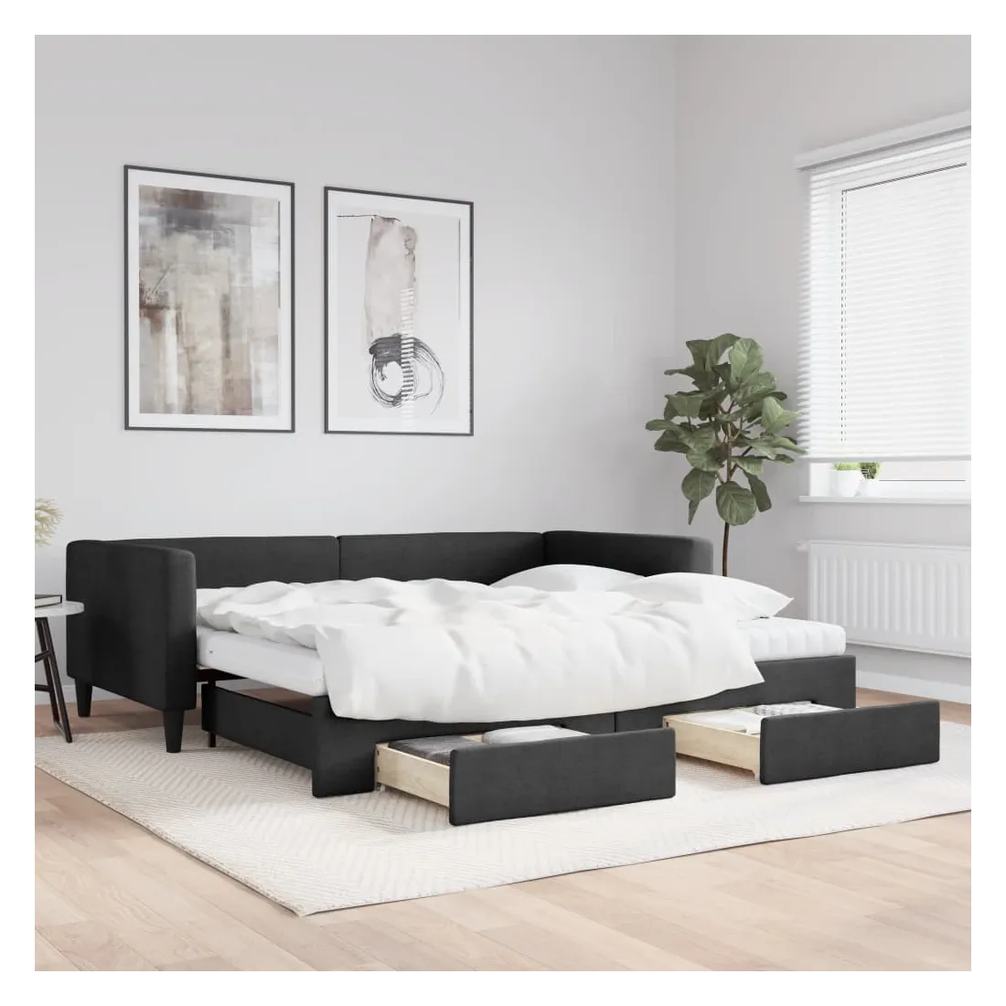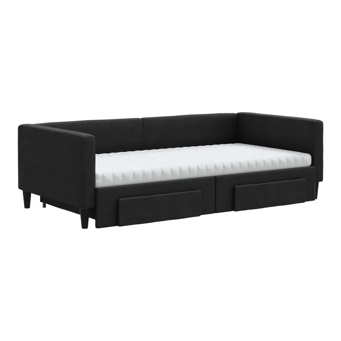 Ce lit de repos 2 en 1 avec lit gigogne, servant à la fois de canapé et de lit, constitue un supplément pratique et accrocheur à votre salon ou chambre à coucher. Lit de repos polyvalent : le canapé-lit fonctionne comme un canapé pendant la journée et se transforme facilement en lit double la nuit en retirant le lit gigogne, offrant une solution pratique pour accueillir des invités et maximiser l'espace. Grand espace de rangement : ce lit d'appoint dispose de deux tiroirs à roulettes qui offrent suffisamment d'espace pour ranger vos vêtements, chaussettes, jouets, coussins, etc. Matelas en mousse confortable : ce lit est fourni avec deux matelas en mousse pour un soutien maximal et un confort optimal. Tissu durable et construction solide : ce canapé-lit a une structure robuste en bois et en métal et est recouvert d'un tissu durable et confortable.