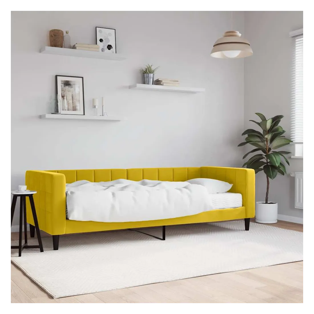 Ce lit de repos 2 en 1 avec matelas, servant à la fois de canapé et de lit, constitue un supplément pratique et accrocheur à votre salon ou votre chambre à coucher. Lit de jour polyvalent : le canapé-lit peut être utilisé comme canapé pendant la journée, ou comme lit pendant la nuit pour offrir une solution rapide pour accueillir des invités pour la nuit.Matelas en mousse confortable : ce lit est fourni avec un matelas en mousse pour un soutien maximal et un confort optimal.Velours doux et construction solide : ce canapé-lit a un cadre robuste en bois et en métal et est recouvert de velours doux et confortable.Design moderne : le canapé-lit a un design moderne qui présente des lignes épurées, un aspect minimaliste, ainsi que de la lumière naturelle, et ajoutera un style moderne à votre intérieur !