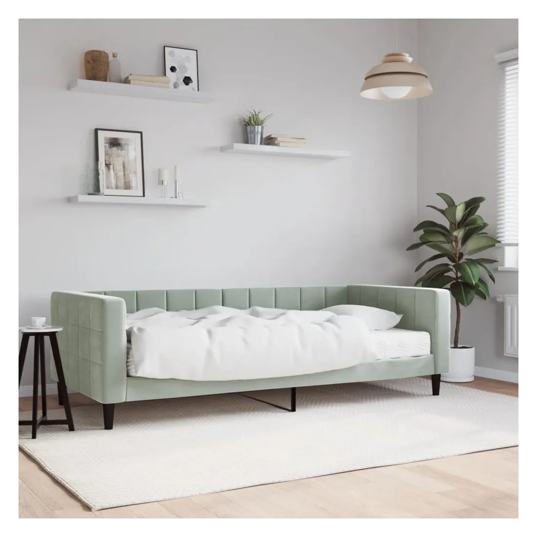 Ce lit de repos 2 en 1 avec matelas, servant à la fois de canapé et de lit, constitue un supplément pratique et accrocheur à votre salon ou votre chambre à coucher. Lit de jour polyvalent : le canapé-lit peut être utilisé comme canapé pendant la journée, ou comme lit pendant la nuit pour offrir une solution rapide pour accueillir des invités pour la nuit.Matelas en mousse confortable : ce lit est fourni avec un matelas en mousse pour un soutien maximal et un confort optimal.Velours doux et construction solide : ce canapé-lit a un cadre robuste en bois et en métal et est recouvert de velours doux et confortable.Design moderne : le canapé-lit a un design moderne qui présente des lignes épurées, un aspect minimaliste, ainsi que de la lumière naturelle, et ajoutera un style moderne à votre intérieur !