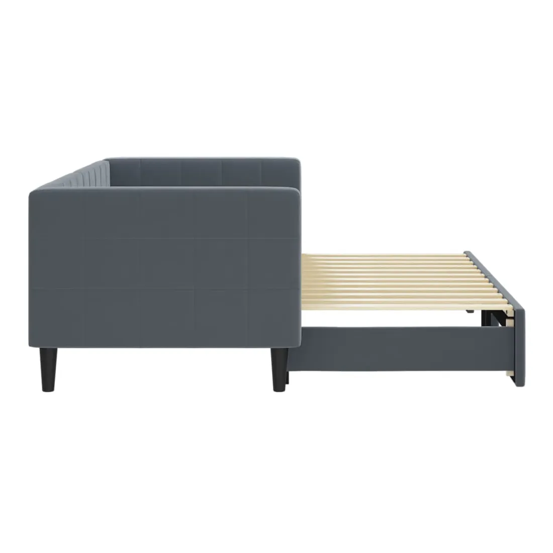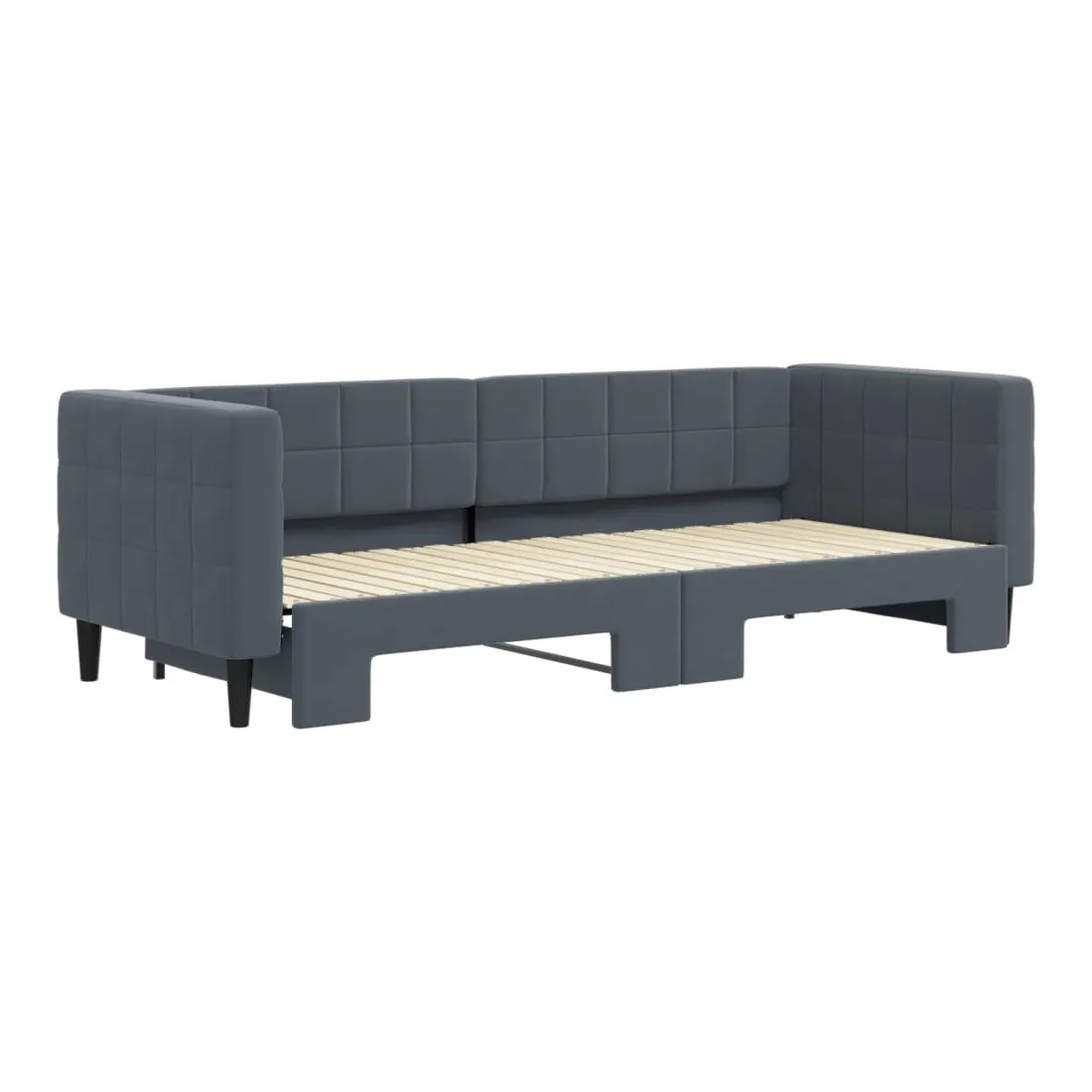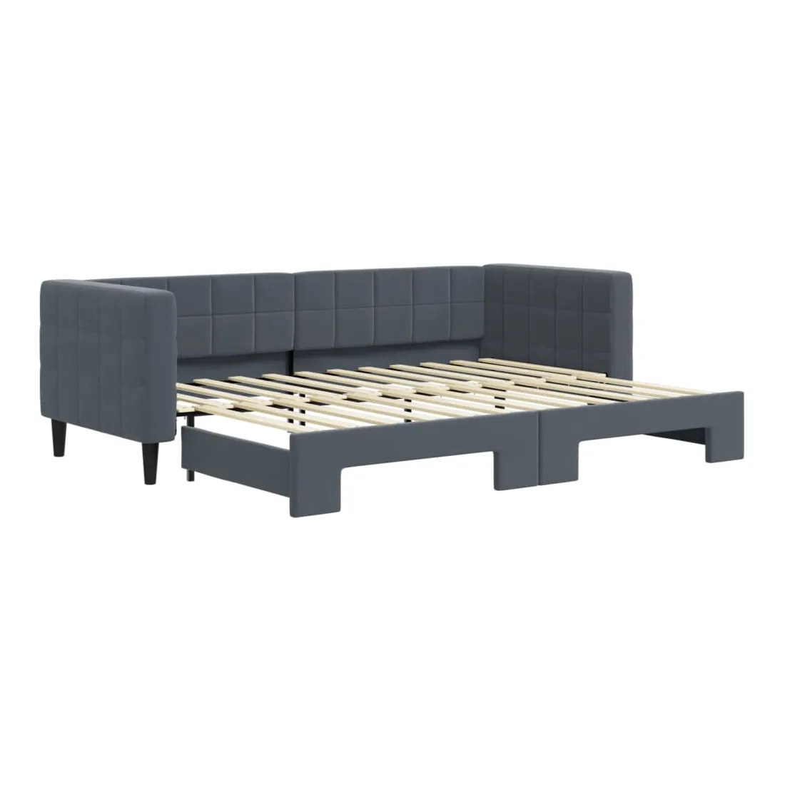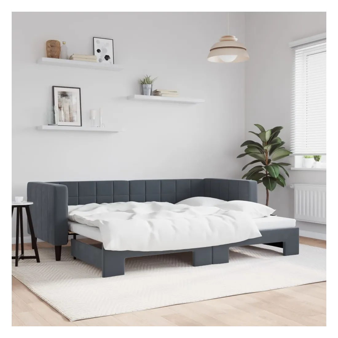 Ce lit de repos 2 en 1 avec lit gigogne, servant à la fois de canapé et de lit, constitue un supplément pratique et accrocheur à votre salon ou chambre à coucher. Lit de repos polyvalent : le canapé-lit fonctionne comme un canapé pendant la journée et se transforme facilement en lit double la nuit en retirant le lit gigogne, offrant une solution pratique pour accueillir des invités et maximiser l'espace.Velours doux et construction solide : ce canapé-lit a un cadre robuste en bois et en métal et est recouvert de velours doux et confortable.Design moderne : le canapé-lit a un design moderne qui présente des lignes épurées, un aspect minimaliste, ainsi que de la lumière naturelle, et ajoutera un style moderne à votre intérieur ! Bon à savoir :Les matelas ne sont pas inclus avec ce lit. Nous proposons une sélection variée de matelas. Vous pouvez consulter notre boutique pour trouver les matelas assortis.