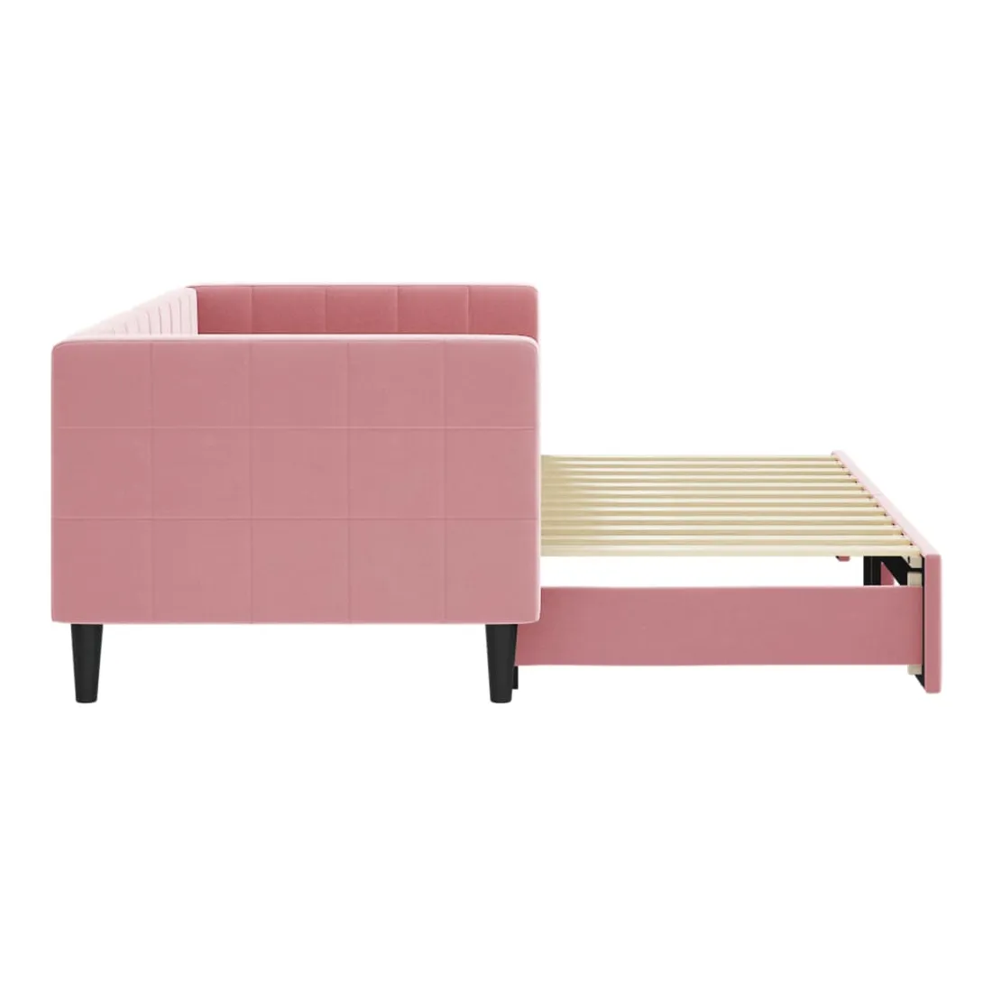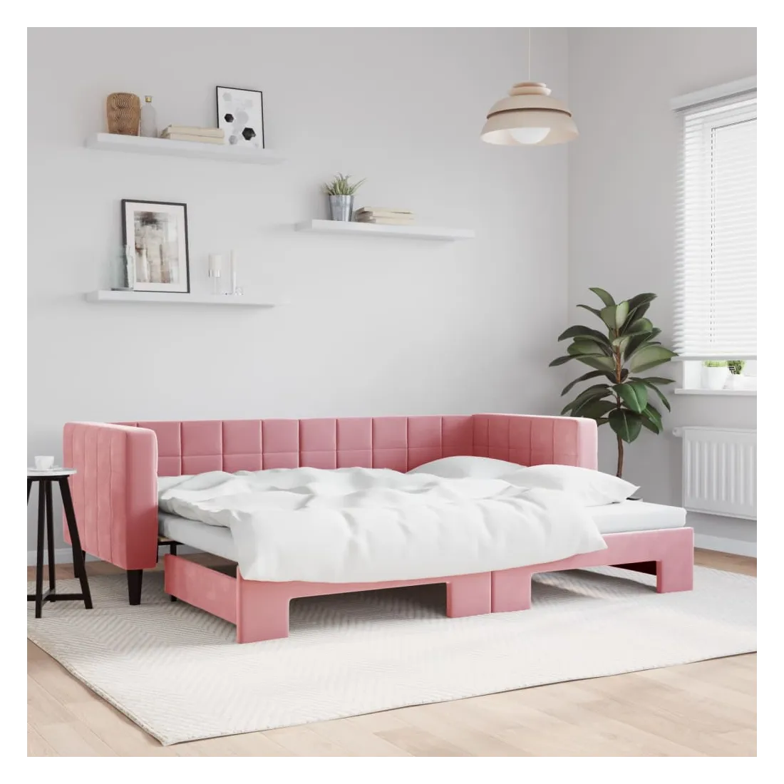 Ce lit de repos 2 en 1 avec lit gigogne, servant à la fois de canapé et de lit, constitue un supplément pratique et accrocheur à votre salon ou chambre à coucher. Lit de repos polyvalent : le canapé-lit fonctionne comme un canapé pendant la journée et se transforme facilement en lit double la nuit en retirant le lit gigogne, offrant une solution pratique pour accueillir des invités et maximiser l'espace.Velours doux et construction solide : ce canapé-lit a un cadre robuste en bois et en métal et est recouvert de velours doux et confortable.Design moderne : le canapé-lit a un design moderne qui présente des lignes épurées, un aspect minimaliste, ainsi que de la lumière naturelle, et ajoutera un style moderne à votre intérieur ! Bon à savoir :Les matelas ne sont pas inclus avec ce lit. Nous proposons une sélection variée de matelas. Vous pouvez consulter notre boutique pour trouver les matelas assortis.