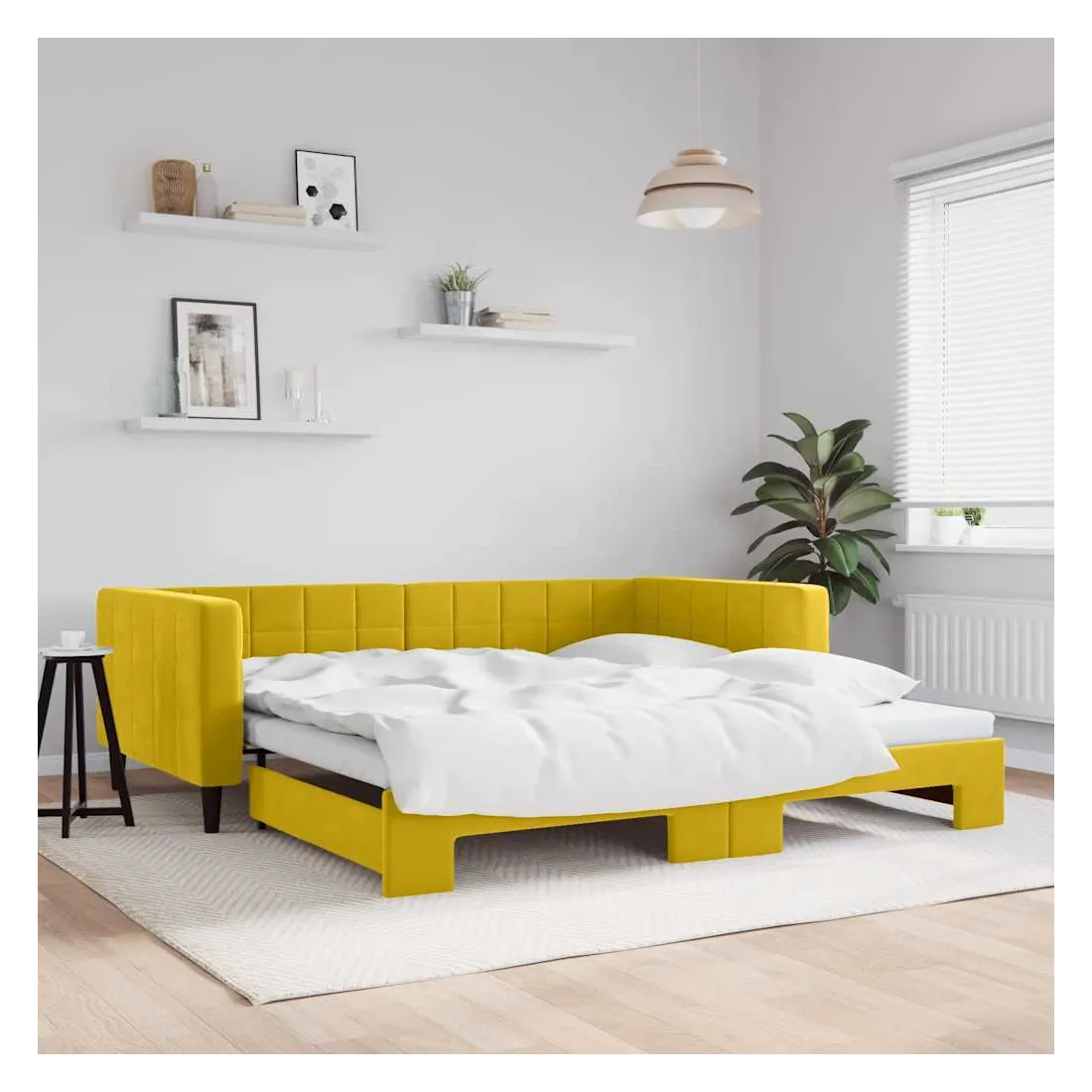 Ce lit de repos 2 en 1 avec lit gigogne, servant à la fois de canapé et de lit, constitue un supplément pratique et accrocheur à votre salon ou chambre à coucher. Lit de repos polyvalent : le canapé-lit fonctionne comme un canapé pendant la journée et se transforme facilement en lit double la nuit en retirant le lit gigogne, offrant une solution pratique pour accueillir des invités et maximiser l'espace.Velours doux et construction solide : ce canapé-lit a un cadre robuste en bois et en métal et est recouvert de velours doux et confortable.Design moderne : le canapé-lit a un design moderne qui présente des lignes épurées, un aspect minimaliste, ainsi que de la lumière naturelle, et ajoutera un style moderne à votre intérieur ! Bon à savoir :Les matelas ne sont pas inclus avec ce lit. Nous proposons une sélection variée de matelas. Vous pouvez consulter notre boutique pour trouver les matelas assortis.