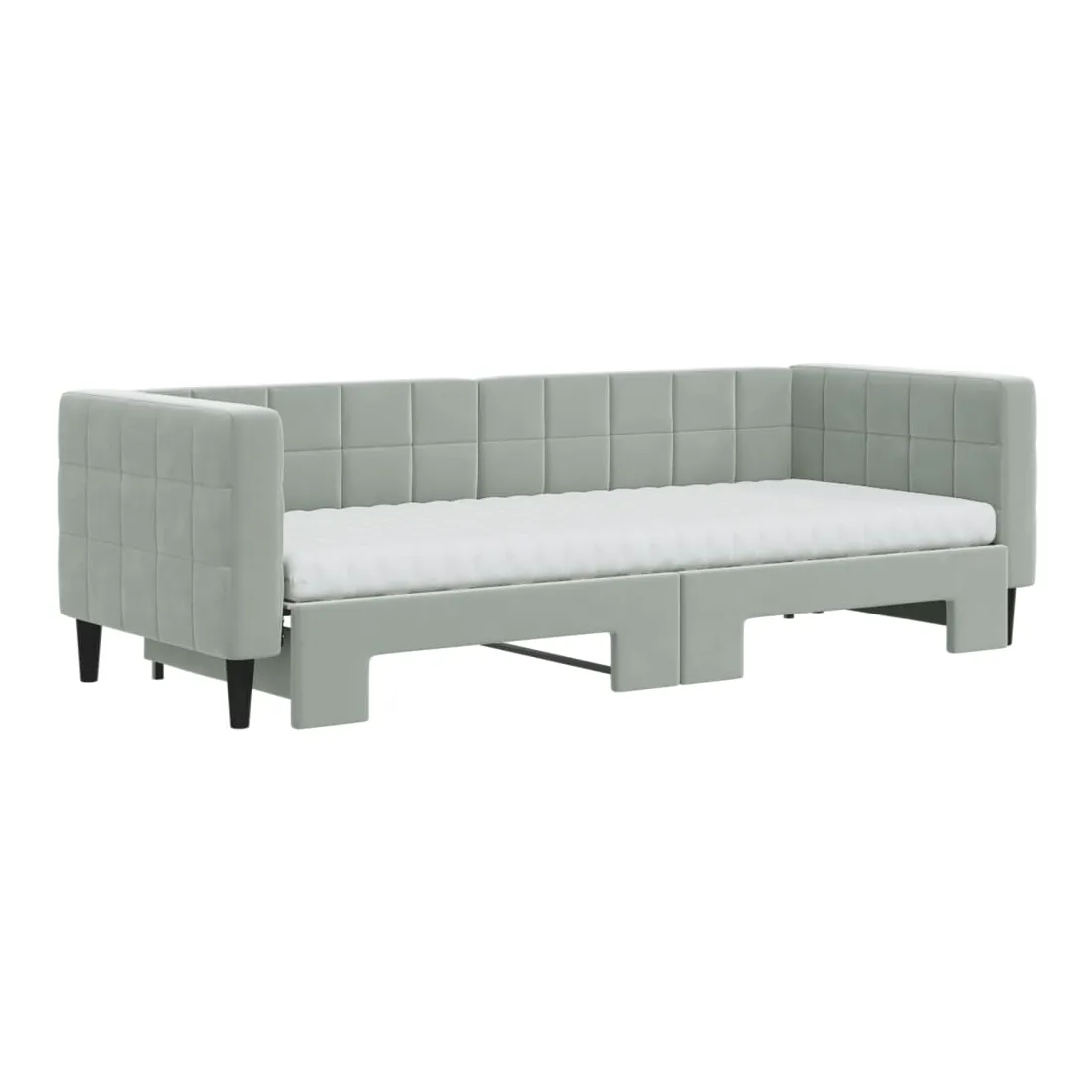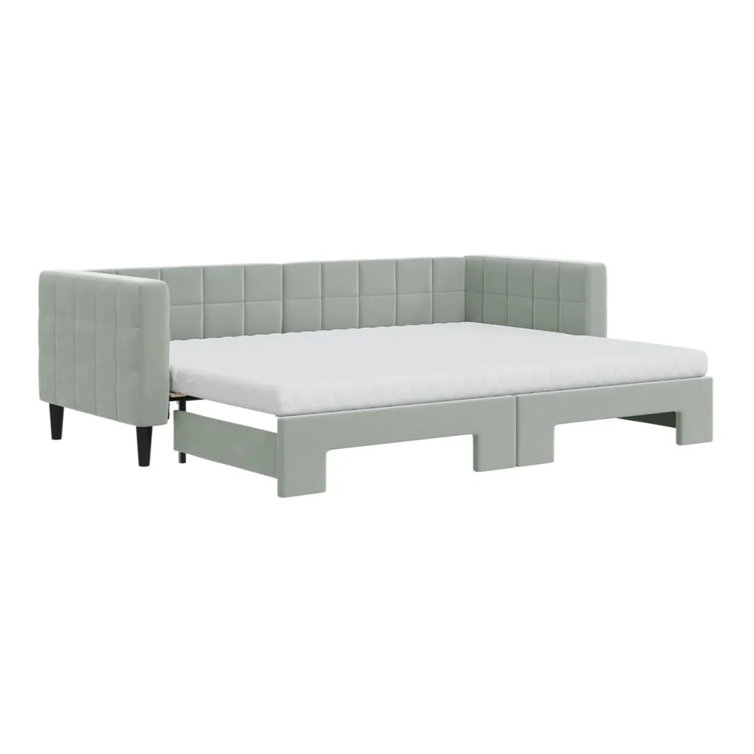 Ce lit de repos 2 en 1 avec lit gigogne, servant à la fois de canapé et de lit, constitue un supplément pratique et accrocheur à votre salon ou chambre à coucher. Lit de repos polyvalent : le canapé-lit fonctionne comme un canapé pendant la journée et se transforme facilement en lit double la nuit en retirant le lit gigogne, offrant une solution pratique pour accueillir des invités et maximiser l'espace.Matelas en mousse confortable : ce lit est fourni avec deux matelas en mousse pour un soutien maximal et un confort optimal.Velours doux et construction solide : ce canapé-lit a un cadre robuste en bois et en métal et est recouvert de velours doux et confortable.Design moderne : le canapé-lit a un design moderne qui présente des lignes épurées, un aspect minimaliste, ainsi que de la lumière naturelle, et ajoutera un style moderne à votre intérieur !