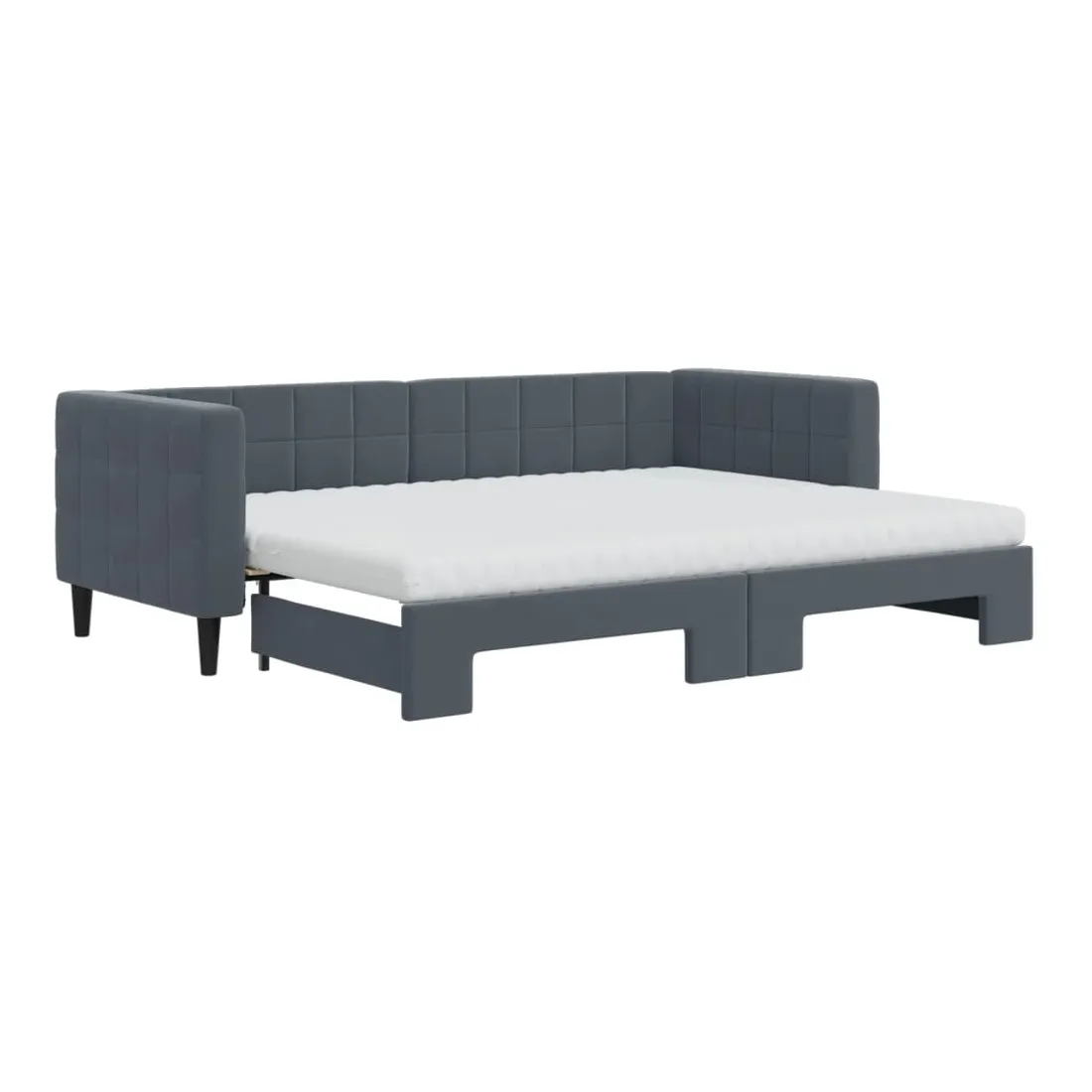Ce lit de repos 2 en 1 avec lit gigogne, servant à la fois de canapé et de lit, constitue un supplément pratique et accrocheur à votre salon ou chambre à coucher. Lit de repos polyvalent : le canapé-lit fonctionne comme un canapé pendant la journée et se transforme facilement en lit double la nuit en retirant le lit gigogne, offrant une solution pratique pour accueillir des invités et maximiser l'espace.Matelas en mousse confortable : ce lit est fourni avec deux matelas en mousse pour un soutien maximal et un confort optimal.Velours doux et construction solide : ce canapé-lit a un cadre robuste en bois et en métal et est recouvert de velours doux et confortable.Design moderne : le canapé-lit a un design moderne qui présente des lignes épurées, un aspect minimaliste, ainsi que de la lumière naturelle, et ajoutera un style moderne à votre intérieur !