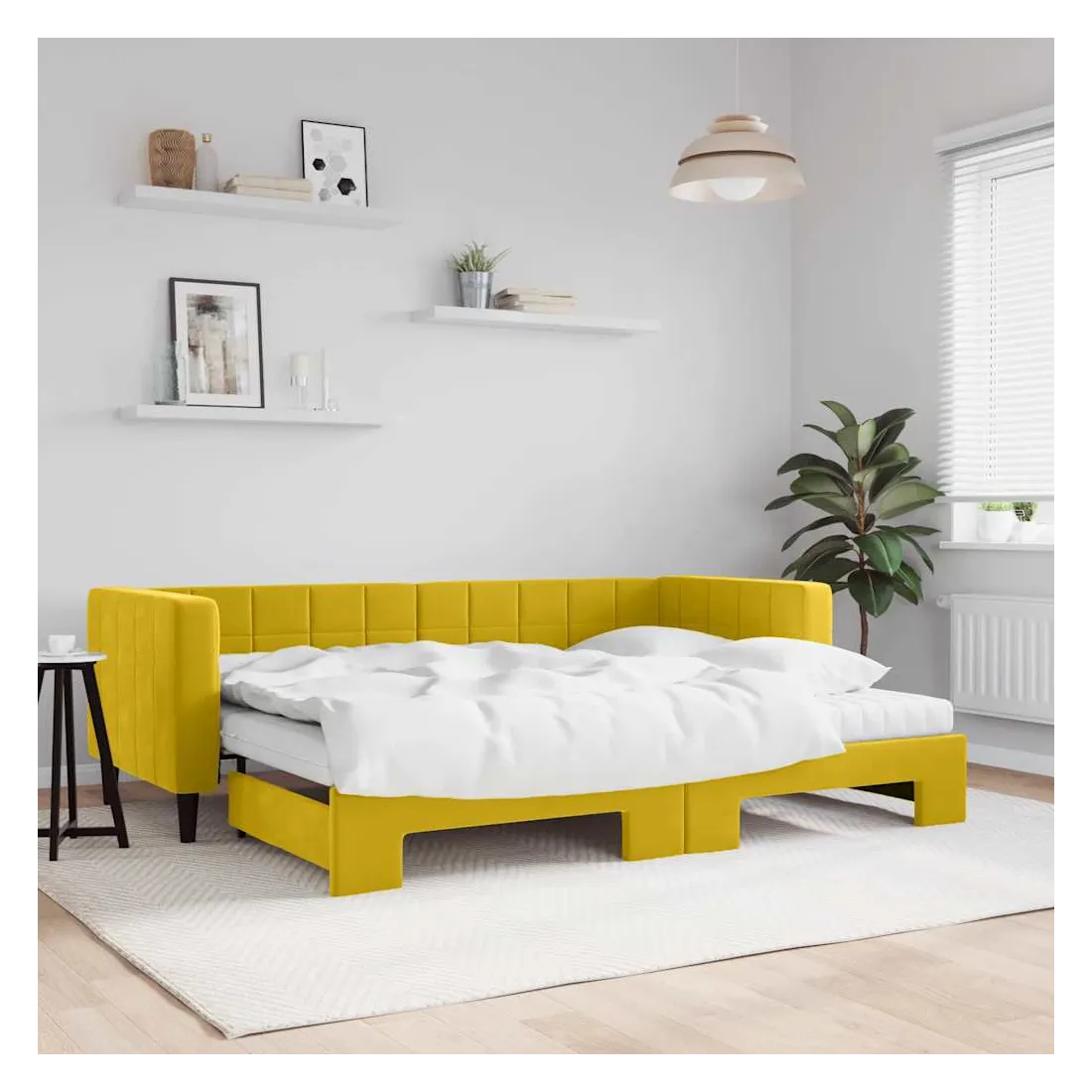 Ce lit de repos 2 en 1 avec lit gigogne, servant à la fois de canapé et de lit, constitue un supplément pratique et accrocheur à votre salon ou chambre à coucher. Lit de repos polyvalent : le canapé-lit fonctionne comme un canapé pendant la journée et se transforme facilement en lit double la nuit en retirant le lit gigogne, offrant une solution pratique pour accueillir des invités et maximiser l'espace.Matelas en mousse confortable : ce lit est fourni avec deux matelas en mousse pour un soutien maximal et un confort optimal.Velours doux et construction solide : ce canapé-lit a un cadre robuste en bois et en métal et est recouvert de velours doux et confortable.Design moderne : le canapé-lit a un design moderne qui présente des lignes épurées, un aspect minimaliste, ainsi que de la lumière naturelle, et ajoutera un style moderne à votre intérieur !