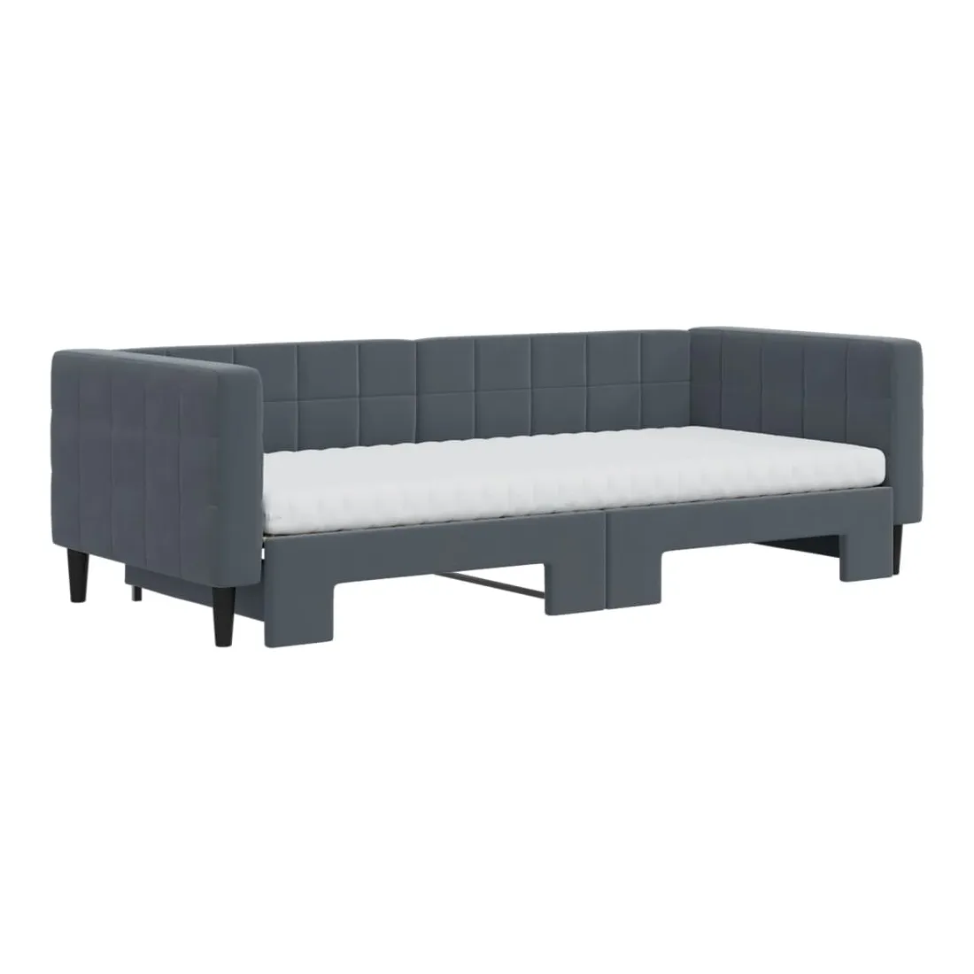 Ce lit de repos 2 en 1 avec lit gigogne, servant à la fois de canapé et de lit, constitue un supplément pratique et accrocheur à votre salon ou chambre à coucher. Lit de repos polyvalent : le canapé-lit fonctionne comme un canapé pendant la journée et se transforme facilement en lit double la nuit en retirant le lit gigogne, offrant une solution pratique pour accueillir des invités et maximiser l'espace.Matelas en mousse confortable : ce lit est fourni avec deux matelas en mousse pour un soutien maximal et un confort optimal.Velours doux et construction solide : ce canapé-lit a un cadre robuste en bois et en métal et est recouvert de velours doux et confortable.Design moderne : le canapé-lit a un design moderne qui présente des lignes épurées, un aspect minimaliste, ainsi que de la lumière naturelle, et ajoutera un style moderne à votre intérieur !