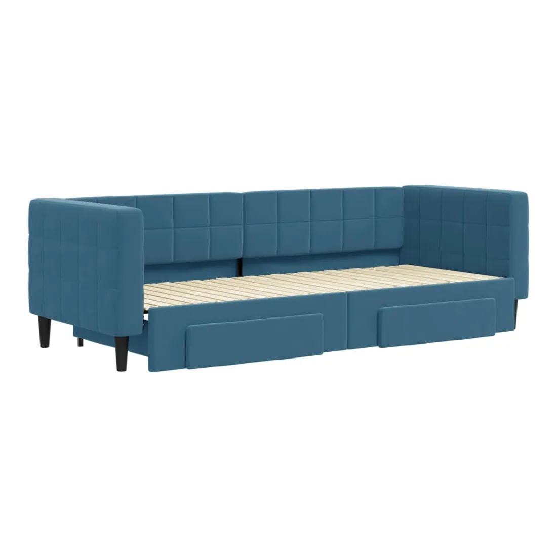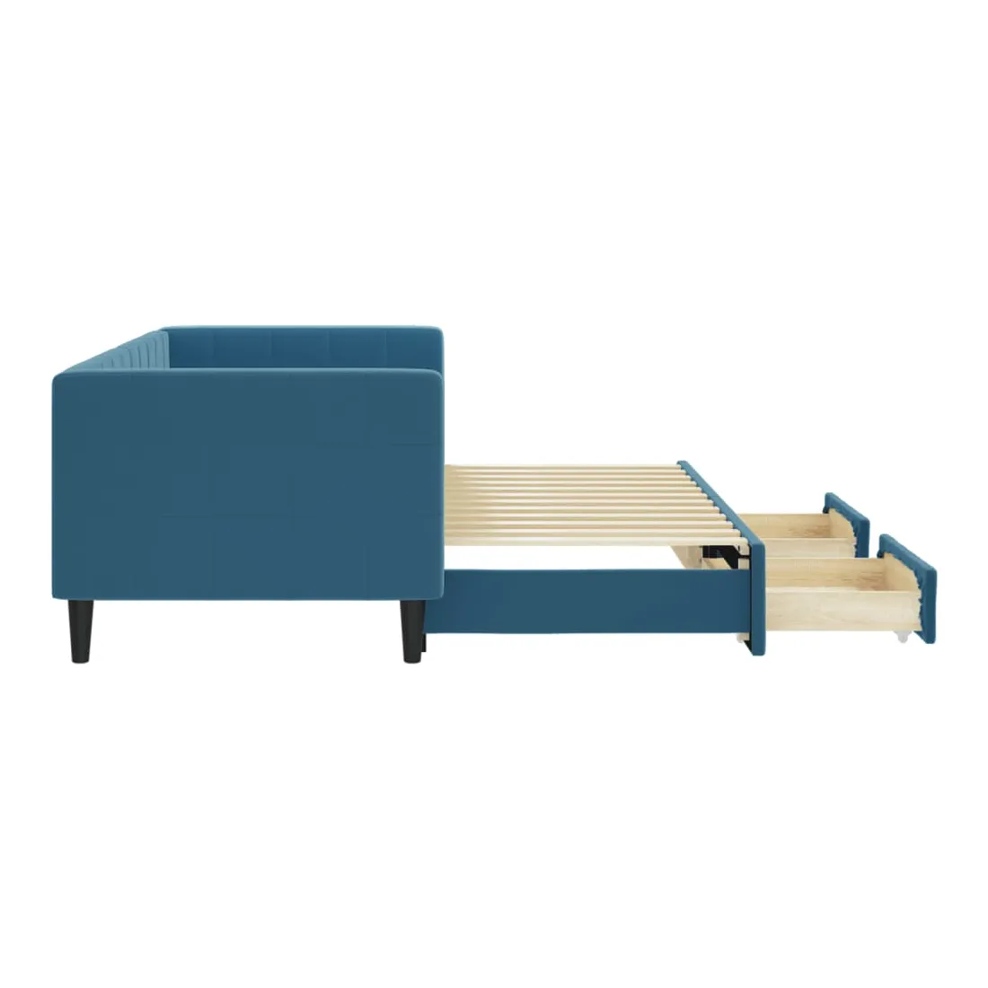 Ce lit de repos 2 en 1 avec lit gigogne, servant à la fois de canapé et de lit, constitue un supplément pratique et accrocheur à votre salon ou chambre à coucher. Lit de repos polyvalent : le canapé-lit fonctionne comme un canapé pendant la journée et se transforme facilement en lit double la nuit en retirant le lit gigogne, offrant une solution pratique pour accueillir des invités et maximiser l'espace.Grand espace de rangement : ce lit d'appoint dispose de deux tiroirs à roulettes qui offrent suffisamment d'espace pour ranger vos vêtements, chaussettes, jouets, coussins, etc.Velours doux et construction solide : ce canapé-lit a un cadre robuste en bois et en métal et est recouvert de velours doux et confortable.Design moderne : le canapé-lit a un design moderne qui présente des lignes épurées, un aspect minimaliste, ainsi que de la lumière naturelle, et ajoutera un style moderne à votre intérieur ! Bon à savoir :Les matelas ne sont pas inclus avec ce lit. Nous proposons une sélection variée de matelas. Vous pouvez consulter notre boutique pour trouver les matelas assortis.
