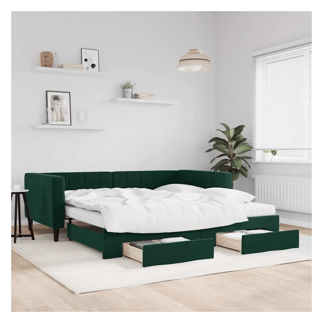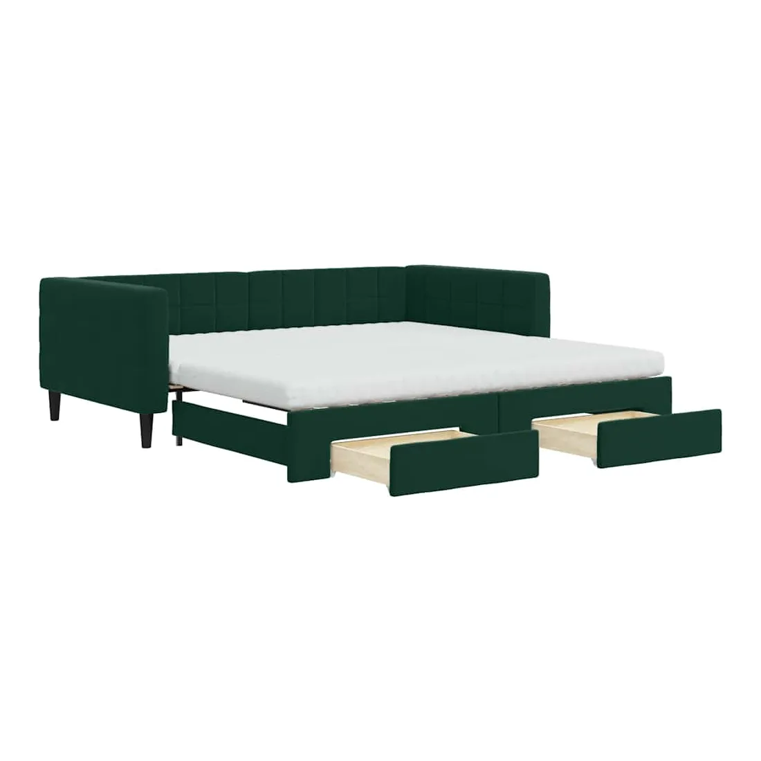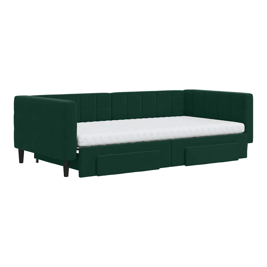 Ce lit de repos 2 en 1 avec lit gigogne, servant à la fois de canapé et de lit, constitue un supplément pratique et accrocheur à votre salon ou chambre à coucher. Lit de repos polyvalent : le canapé-lit fonctionne comme un canapé pendant la journée et se transforme facilement en lit double la nuit en retirant le lit gigogne, offrant une solution pratique pour accueillir des invités et maximiser l'espace.Grand espace de rangement : ce lit d'appoint dispose de deux tiroirs à roulettes qui offrent suffisamment d'espace pour ranger vos vêtements, chaussettes, jouets, coussins, etc.Matelas en mousse confortable : ce lit est fourni avec deux matelas en mousse pour un soutien maximal et un confort optimal.Velours doux et construction solide : ce canapé-lit a un cadre robuste en bois et en métal et est recouvert de velours doux et confortable.