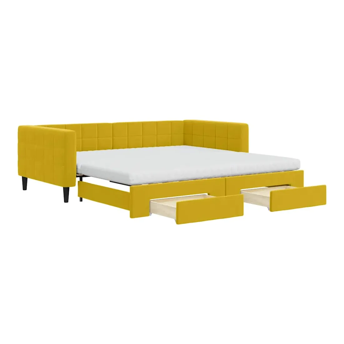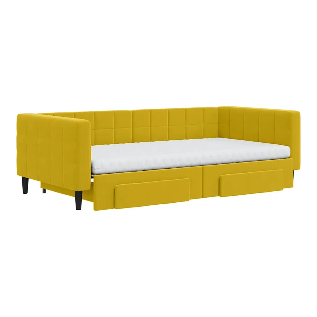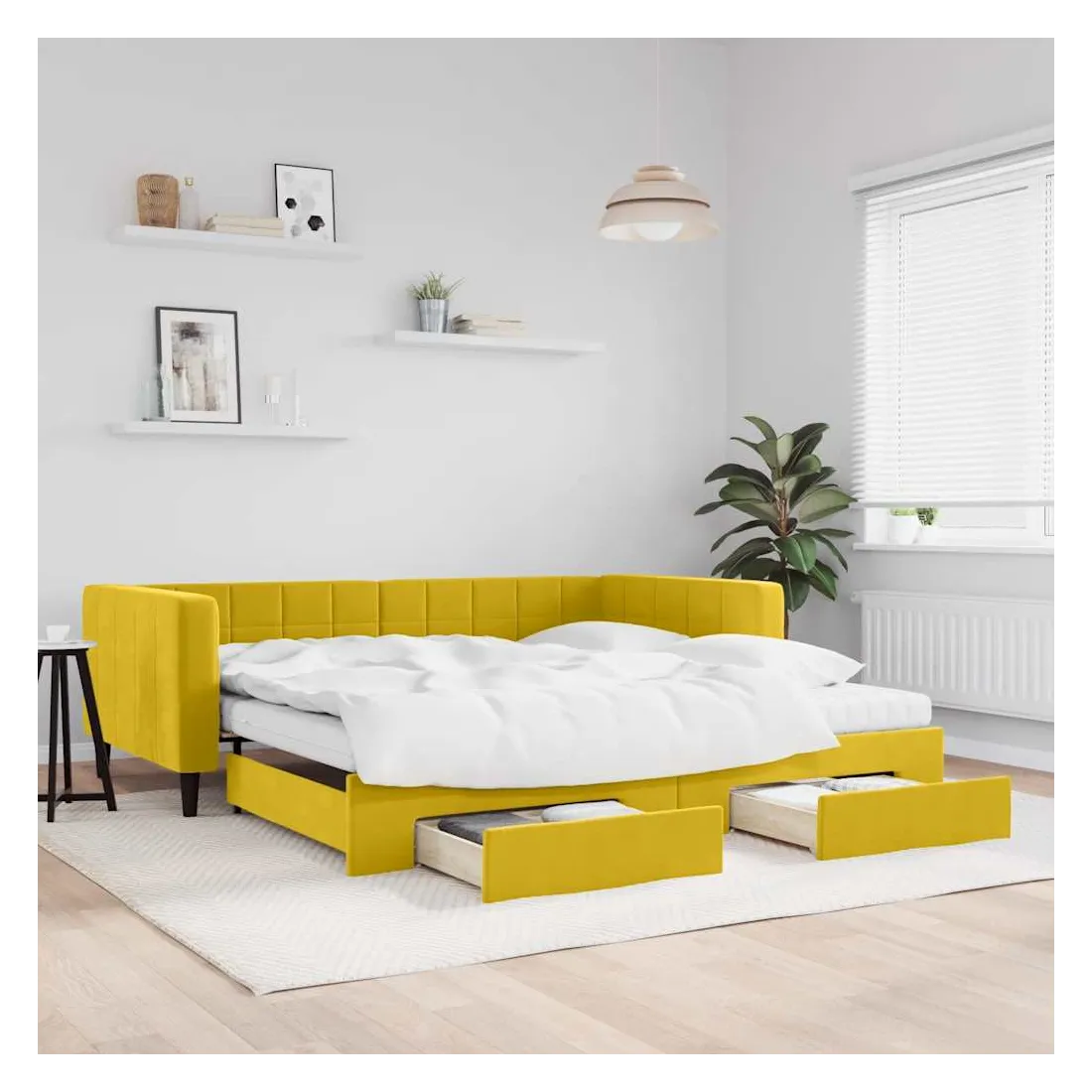Lit de jour avec gigogne et tiroirs jaune 100x200 cm velours