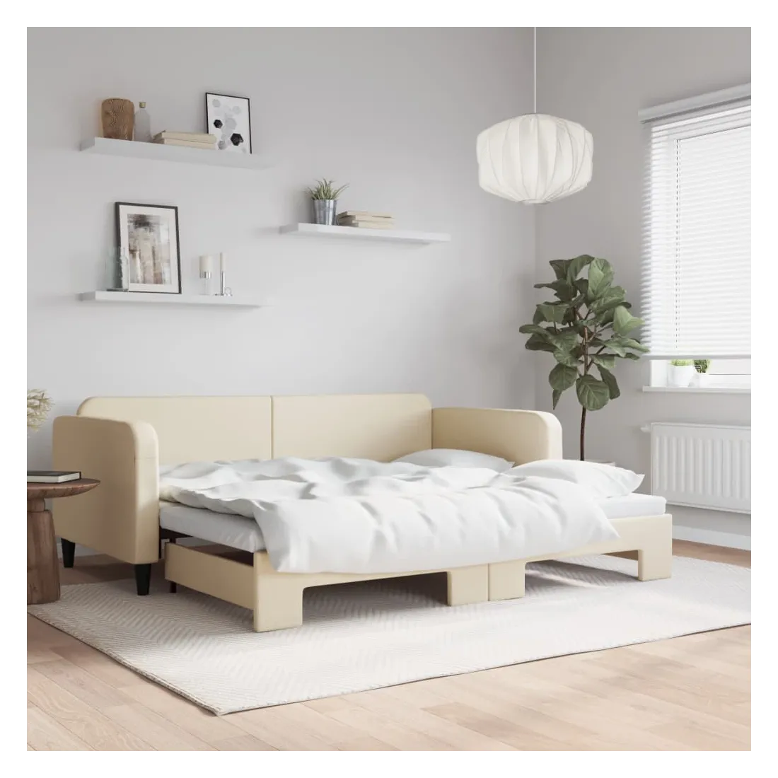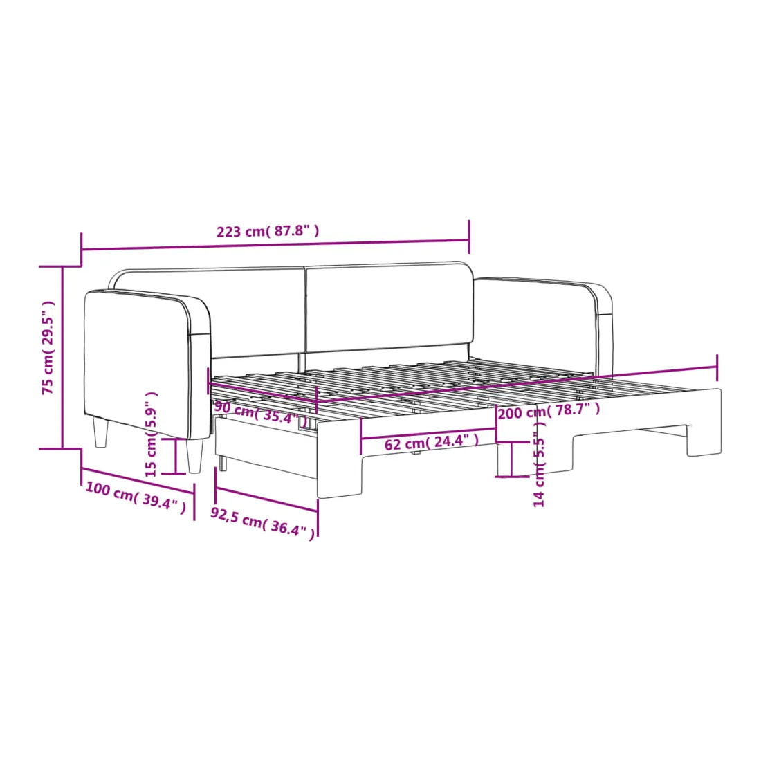 Ce lit de repos 2 en 1 avec lit gigogne, servant à la fois de canapé et de lit, constitue un supplément pratique et accrocheur à votre salon ou chambre à coucher. Lit de repos polyvalent : le canapé-lit fonctionne comme un canapé pendant la journée et se transforme facilement en lit double la nuit en retirant le lit gigogne, offrant une solution pratique pour accueillir des invités et maximiser l'espace.Tissu durable : lit d'appoint est en tissu. Le tissu présente un aspect simple et épuré tout en restant respirant et durable.Construction solide : la structure en bois et en métal du lit assure robustesse et stabilité. Bon à savoir :Les matelas ne sont pas inclus avec ce lit de repos. Nous proposons une sélection variée de matelas. Vous pouvez consulter notre boutique pour les matelas assortis.