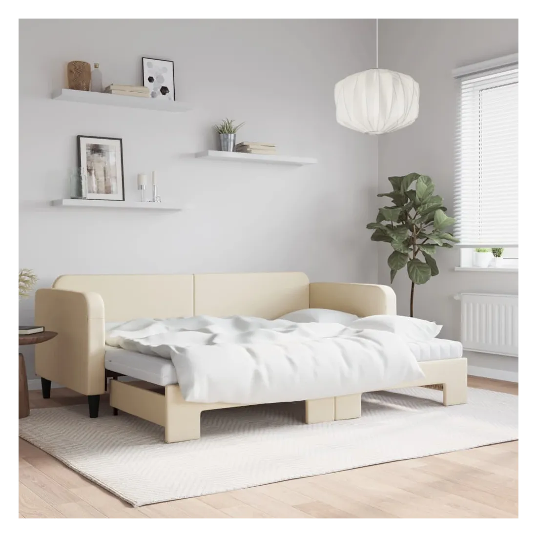 Ce lit de repos 2 en 1 avec lit gigogne, servant à la fois de canapé et de lit, constitue un supplément pratique et accrocheur à votre salon ou chambre à coucher. Lit de repos polyvalent : le canapé-lit fonctionne comme un canapé pendant la journée et se transforme facilement en lit double la nuit en retirant le lit gigogne, offrant une solution pratique pour accueillir des invités et maximiser l'espace.Matelas en mousse confortable : ce lit est fourni avec deux matelas en mousse pour un soutien maximal et un confort optimal.Tissu durable et construction solide : ce canapé-lit a une structure robuste en bois et en métal et est recouvert d'un tissu durable et confortable.