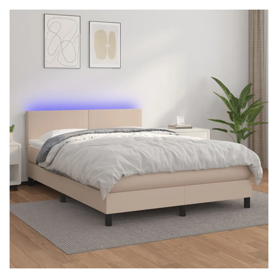 vidaXLUtilisez ce sommier tapissier avec matelas et LED pour profiter d'un sommeil réparateur ! C'est le point central de votre chambre à coucher. Similicuir durable : le similicuir de qualité supérieure est un matériau très durable. Il est résistant aux taches, ce qui le rend facile à nettoyer avec un chiffon humide. La surface lisse donne également un aspect luxueux et la beauté du cuir véritable.Tête de lit pratique : la tête de lit est réglable en hauteur selon vos préférences. La tête de lit vous offre un excellent soutien du dos lorsque vous êtes assis dans votre lit pour lire ou regarder la télévision.Bande LED colorée : apportez de l'éclairage dans l'obscurité avec des lumières LED colorées !Matelas à ressorts ensachés : le ressort ensaché individuel intégré est connu pour sa très haute qualité tout en assurant un haut niveau de durabilité et d'adaptabilité. Il peut absorber efficacement le bruit et les chocs causés par les sauts et les rotations.Protège-matelas doux pour la peau : le protège-matelas est recouvert d'un tissu résistant et doux pour la peau, ce qui le rend souple et confortable. Remarque :Pour des raisons d'hygiène, le matelas ne peut pas être retourné si l'emballage est retiré ou ouvert.Chaque produit est livré avec un manuel de montage dans la boîte pour un montage facile.Seule la partie avec un symbole de ciseaux peut être coupée et seule la partie avec l'USB continuera à fonctionner comme avant.Ce produit est doté d'un connecteur USB, mais la source d'alimentation certifiée de USB 5V n'est pas incluse.