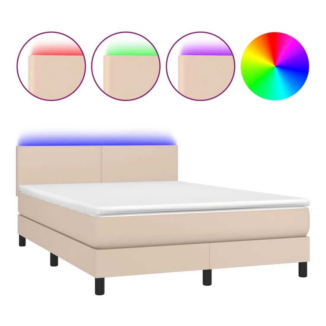 Sommier à lattes de lit avec matelas LED Cappuccino 140x190 cm
