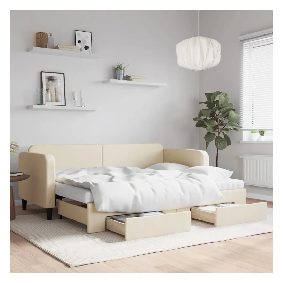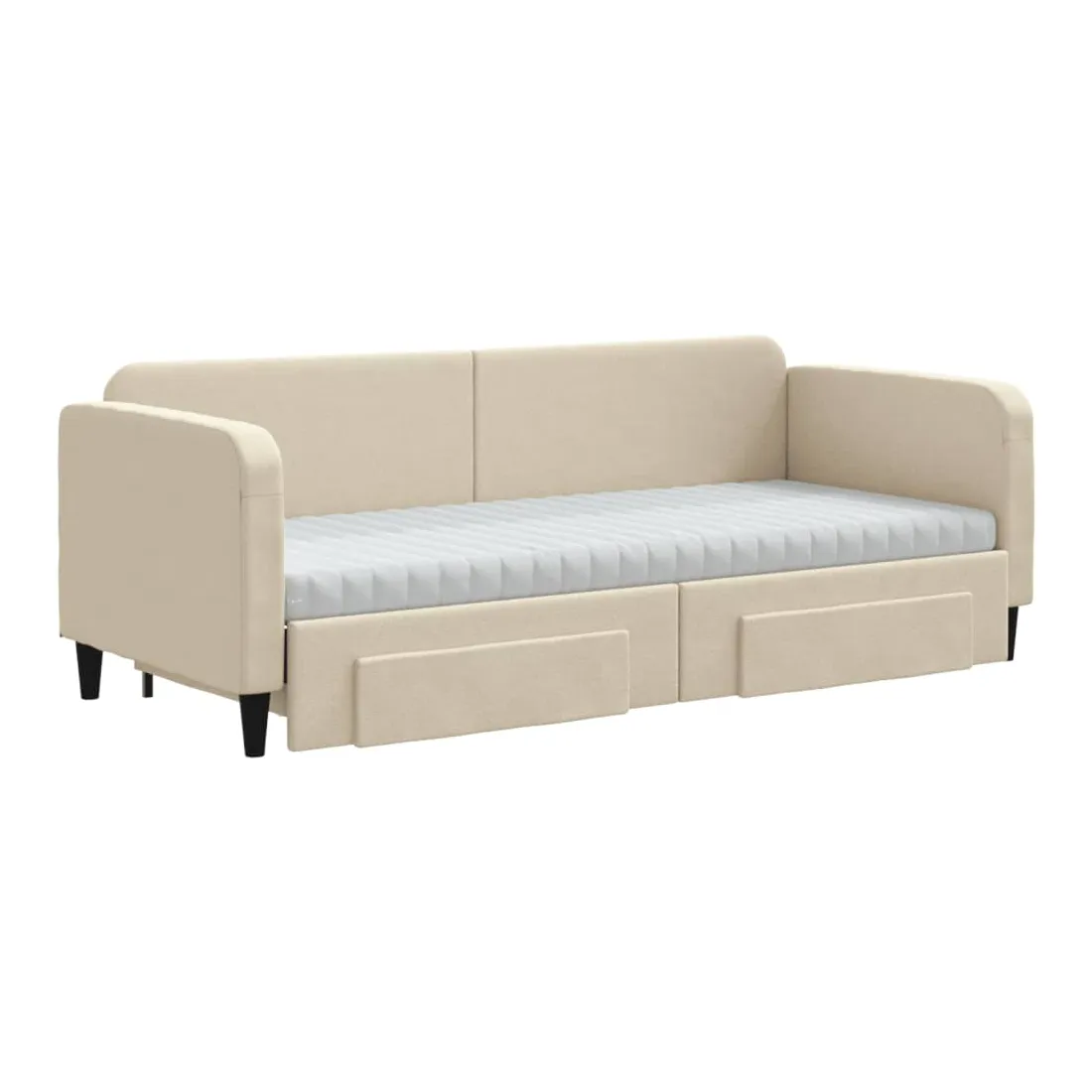 Ce lit de repos 2 en 1 avec lit gigogne, servant à la fois de canapé et de lit, constitue un supplément pratique et accrocheur à votre salon ou chambre à coucher. Lit de repos polyvalent : le canapé-lit fonctionne comme un canapé pendant la journée et se transforme facilement en lit double la nuit en retirant le lit gigogne, offrant une solution pratique pour accueillir des invités et maximiser l'espace.Grand espace de rangement : ce lit d'appoint dispose de deux tiroirs à roulettes qui offrent suffisamment d'espace pour ranger vos vêtements, chaussettes, jouets, coussins, etc.Matelas en mousse confortable : ce lit est fourni avec deux matelas en mousse pour un soutien maximal et un confort optimal.Tissu durable et construction solide : ce canapé-lit a une structure robuste en bois et en métal et est recouvert d'un tissu durable et confortable.