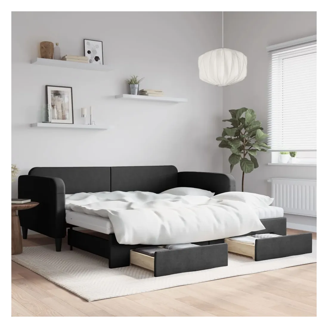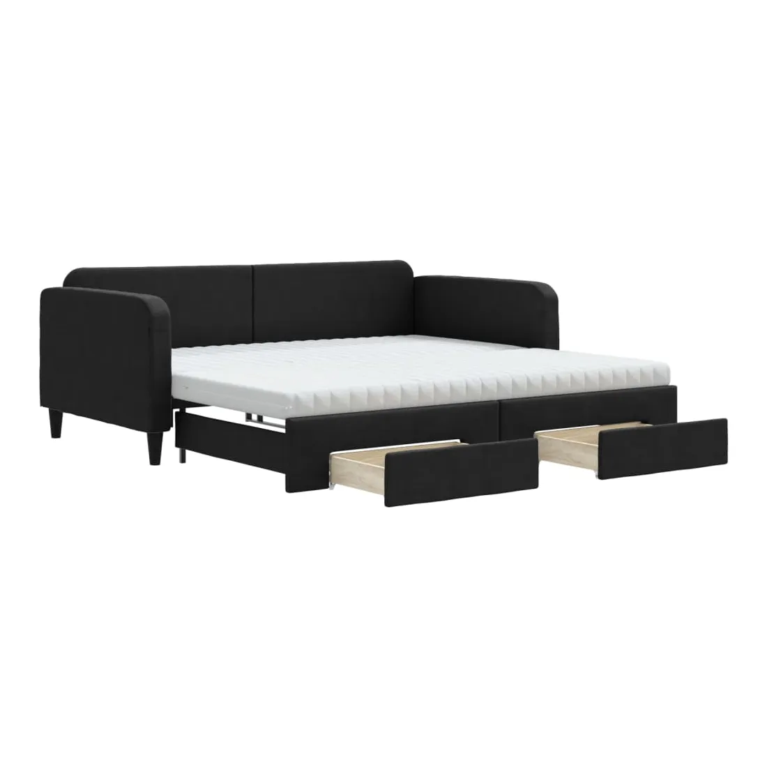 Ce lit de repos 2 en 1 avec lit gigogne, servant à la fois de canapé et de lit, constitue un supplément pratique et accrocheur à votre salon ou chambre à coucher. Lit de repos polyvalent : le canapé-lit fonctionne comme un canapé pendant la journée et se transforme facilement en lit double la nuit en retirant le lit gigogne, offrant une solution pratique pour accueillir des invités et maximiser l'espace.Grand espace de rangement : ce lit d'appoint dispose de deux tiroirs à roulettes qui offrent suffisamment d'espace pour ranger vos vêtements, chaussettes, jouets, coussins, etc.Matelas en mousse confortable : ce lit est fourni avec deux matelas en mousse pour un soutien maximal et un confort optimal.Tissu durable et construction solide : ce canapé-lit a une structure robuste en bois et en métal et est recouvert d'un tissu durable et confortable.