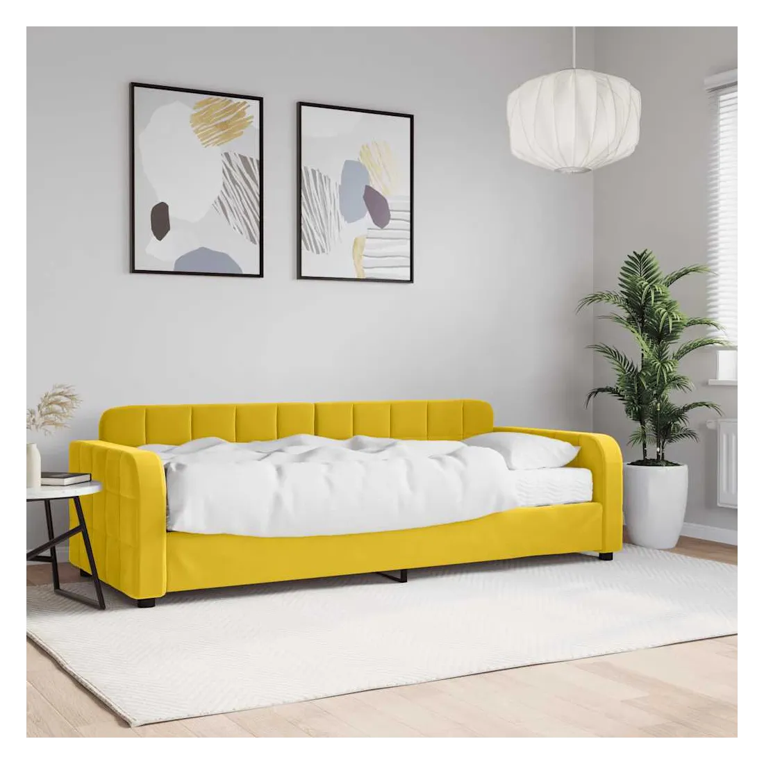 Ce lit de repos 2 en 1 avec matelas, servant à la fois de canapé et de lit, constitue un supplément pratique et accrocheur à votre salon ou votre chambre à coucher. Lit de jour polyvalent : le canapé-lit peut être utilisé comme canapé pendant la journée, ou comme lit pendant la nuit pour offrir une solution rapide pour accueillir des invités pour la nuit.Matelas en mousse confortable : ce lit est fourni avec un matelas en mousse pour un soutien maximal et un confort optimal.Velours doux et construction solide : ce canapé-lit a un cadre robuste en bois et en métal et est recouvert de velours doux et confortable.