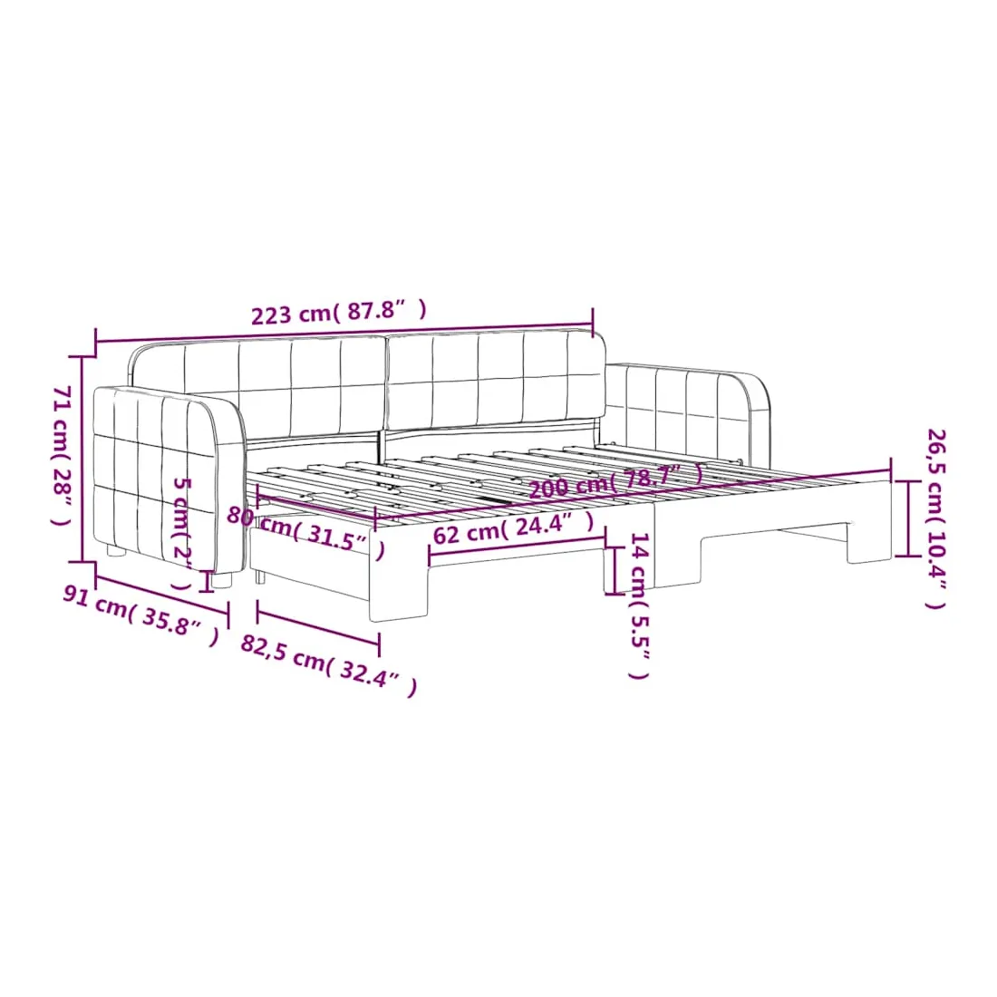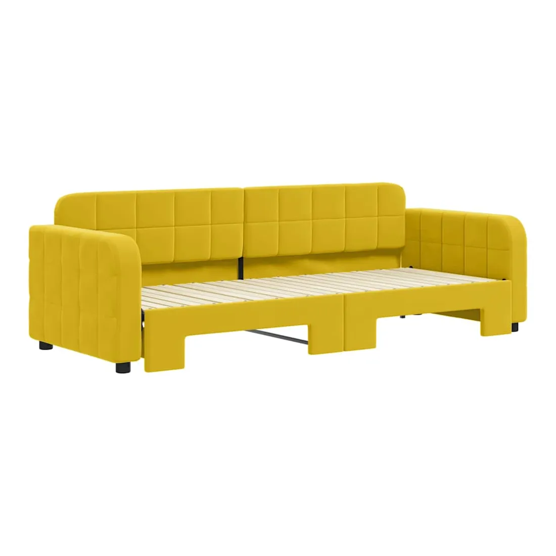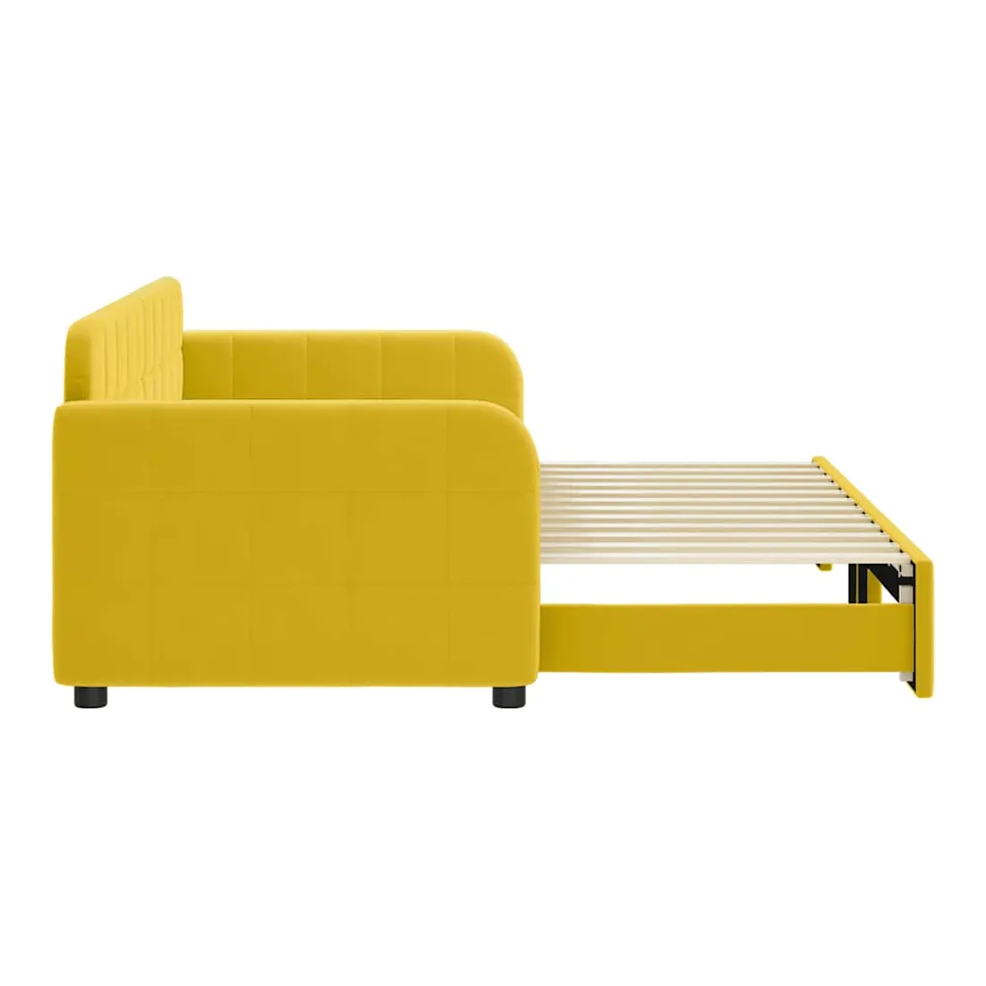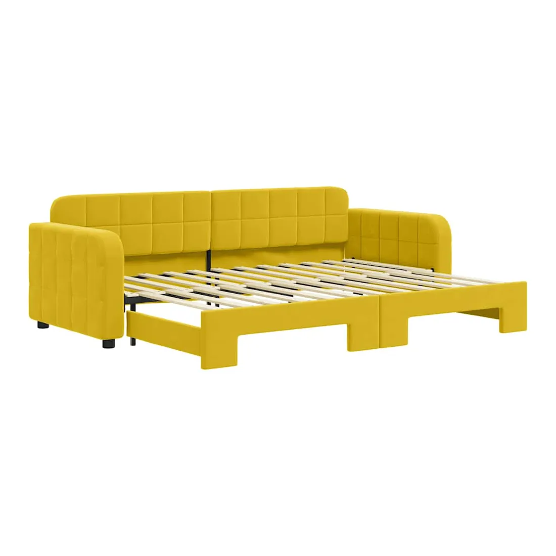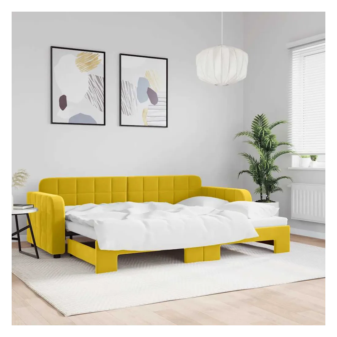 Ce lit de repos 2 en 1 avec lit gigogne, servant à la fois de canapé et de lit, constitue un supplément pratique et accrocheur à votre salon ou chambre à coucher. Lit de repos polyvalent : le canapé-lit fonctionne comme un canapé pendant la journée et se transforme facilement en lit double la nuit en retirant le lit gigogne, offrant une solution pratique pour accueillir des invités et maximiser l'espace.Velours doux : le velours est un tissu doux et confortable, agréable au toucher.Construction solide : la structure en bois et en métal du lit assure robustesse et stabilité. Bon à savoir :Les matelas ne sont pas inclus avec ce lit de repos. Nous proposons une sélection variée de matelas. Vous pouvez consulter notre boutique pour les matelas assortis.