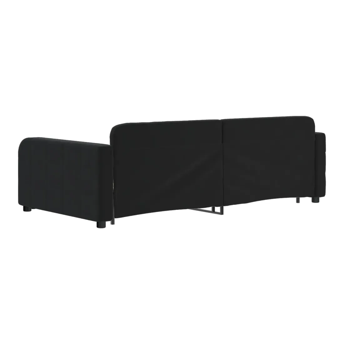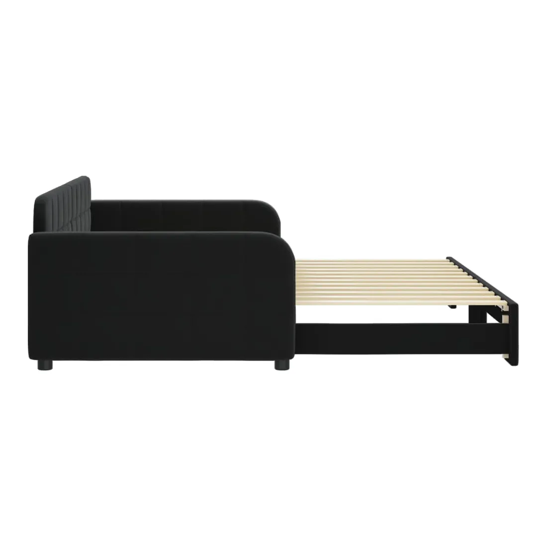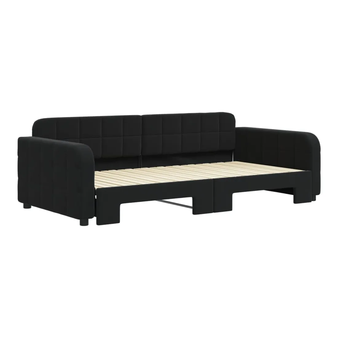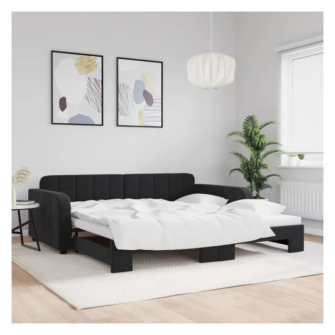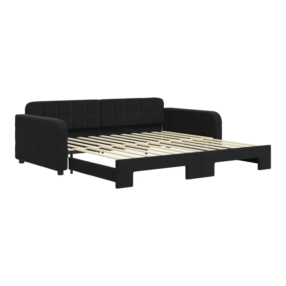 Ce lit de repos 2 en 1 avec lit gigogne, servant à la fois de canapé et de lit, constitue un supplément pratique et accrocheur à votre salon ou chambre à coucher. Lit de repos polyvalent : le canapé-lit fonctionne comme un canapé pendant la journée et se transforme facilement en lit double la nuit en retirant le lit gigogne, offrant une solution pratique pour accueillir des invités et maximiser l'espace.Velours doux : le velours est un tissu doux et confortable, agréable au toucher.Construction solide : la structure en bois et en métal du lit assure robustesse et stabilité. Bon à savoir :Les matelas ne sont pas inclus avec ce lit de repos. Nous proposons une sélection variée de matelas. Vous pouvez consulter notre boutique pour les matelas assortis.