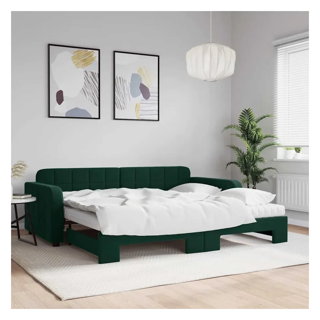 Ce lit de repos 2 en 1 avec lit gigogne, servant à la fois de canapé et de lit, constitue un supplément pratique et accrocheur à votre salon ou chambre à coucher. Lit de repos polyvalent : le canapé-lit fonctionne comme un canapé pendant la journée et se transforme facilement en lit double la nuit en retirant le lit gigogne, offrant une solution pratique pour accueillir des invités et maximiser l'espace.Matelas en mousse confortable : ce lit est fourni avec deux matelas en mousse pour un soutien maximal et un confort optimal.Velours doux et construction solide : ce canapé-lit a un cadre robuste en bois et en métal et est recouvert de velours doux et confortable.