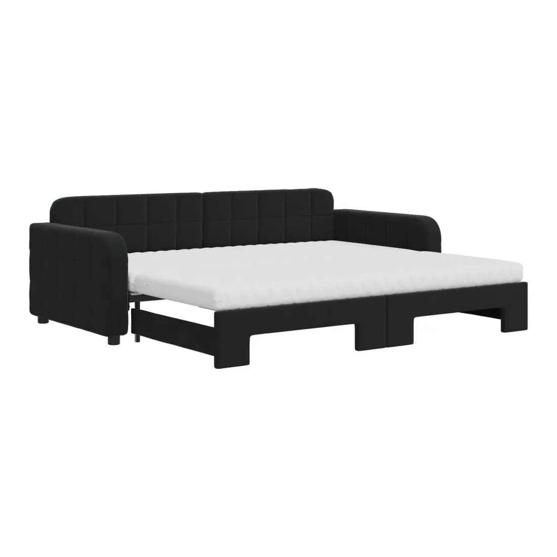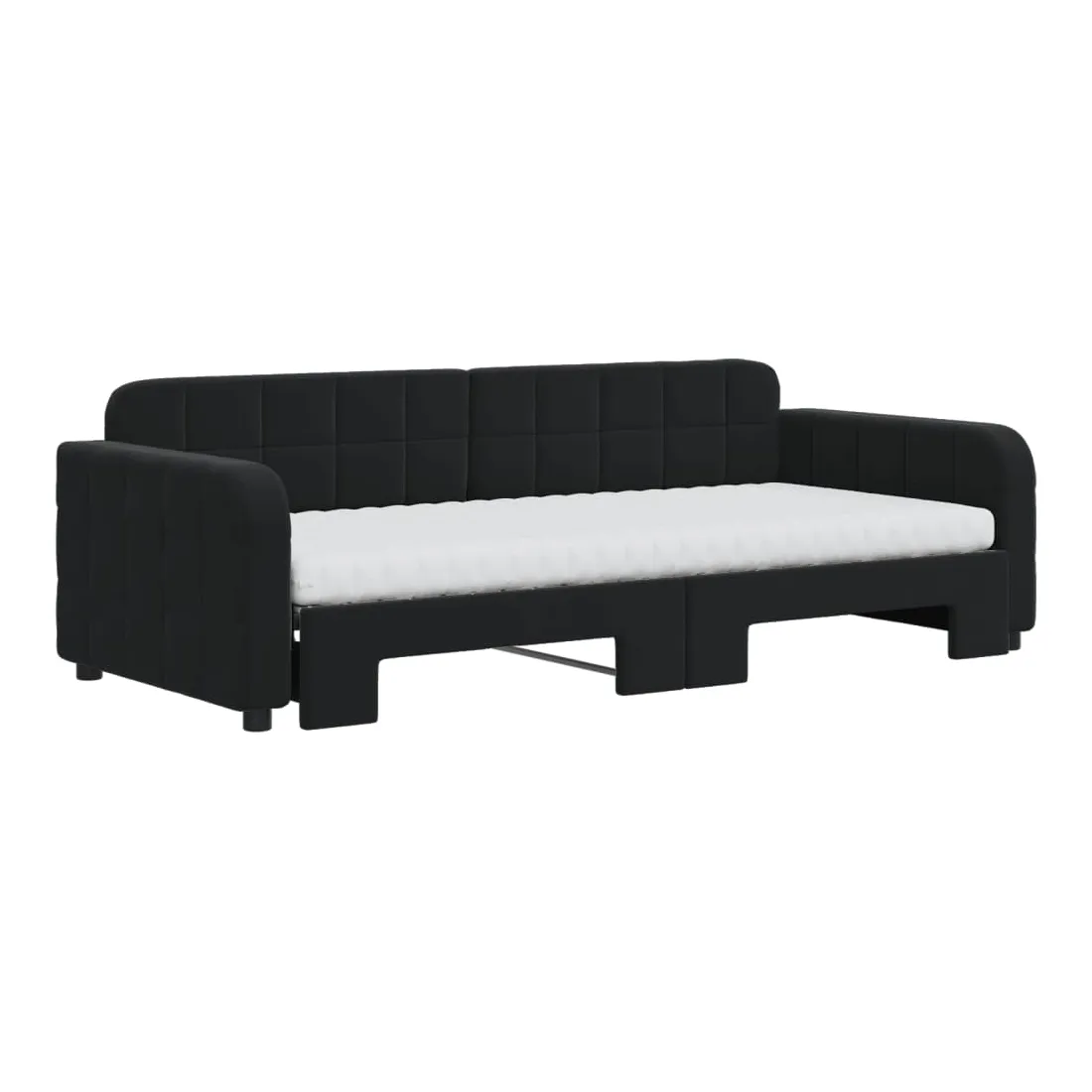 Ce lit de repos 2 en 1 avec lit gigogne, servant à la fois de canapé et de lit, constitue un supplément pratique et accrocheur à votre salon ou chambre à coucher. Lit de repos polyvalent : le canapé-lit fonctionne comme un canapé pendant la journée et se transforme facilement en lit double la nuit en retirant le lit gigogne, offrant une solution pratique pour accueillir des invités et maximiser l'espace.Matelas en mousse confortable : ce lit est fourni avec deux matelas en mousse pour un soutien maximal et un confort optimal.Velours doux et construction solide : ce canapé-lit a un cadre robuste en bois et en métal et est recouvert de velours doux et confortable.