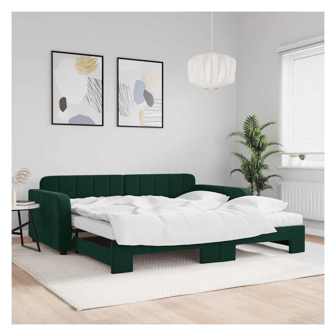 Ce lit de repos 2 en 1 avec lit gigogne, servant à la fois de canapé et de lit, constitue un supplément pratique et accrocheur à votre salon ou chambre à coucher. Lit de repos polyvalent : le canapé-lit fonctionne comme un canapé pendant la journée et se transforme facilement en lit double la nuit en retirant le lit gigogne, offrant une solution pratique pour accueillir des invités et maximiser l'espace.Matelas en mousse confortable : ce lit est fourni avec deux matelas en mousse pour un soutien maximal et un confort optimal.Velours doux et construction solide : ce canapé-lit a un cadre robuste en bois et en métal et est recouvert de velours doux et confortable.