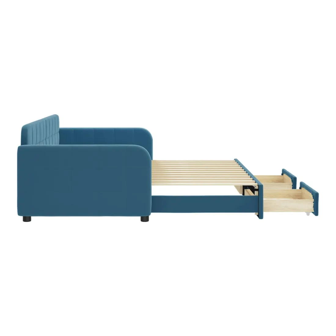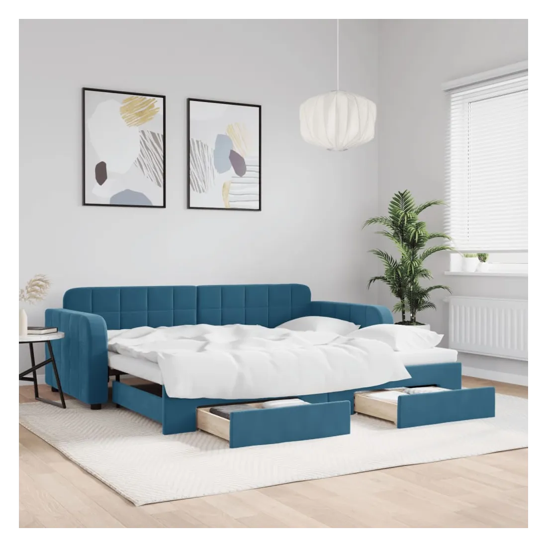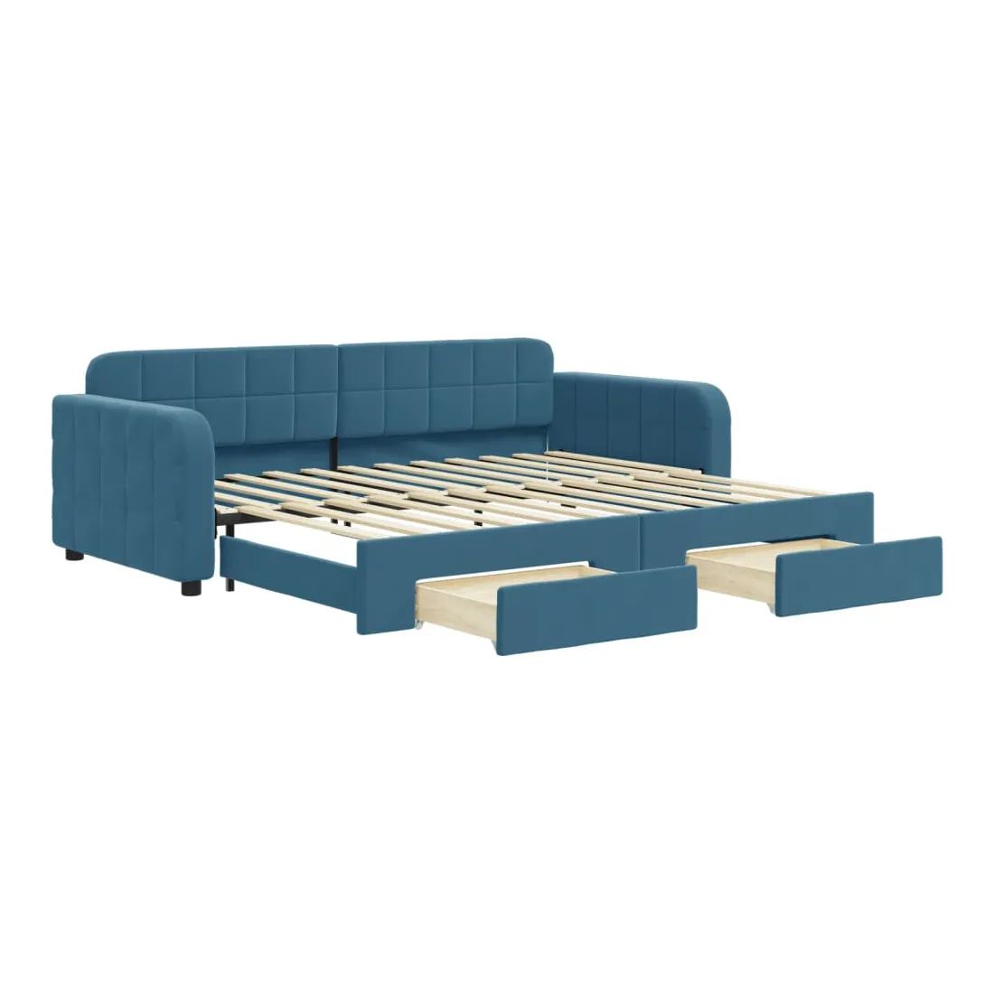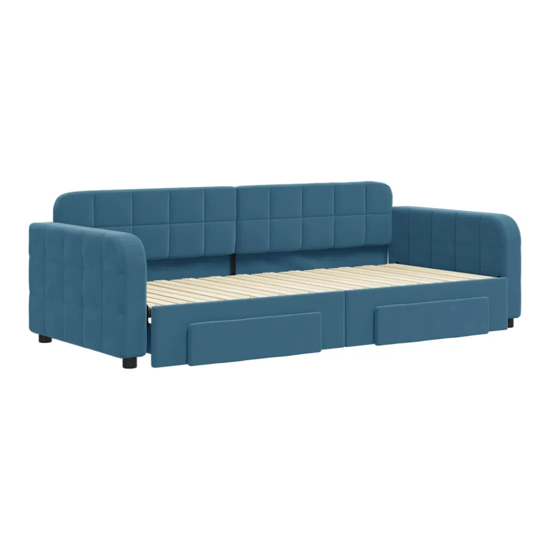 Ce lit de repos 2 en 1 avec lit gigogne, servant à la fois de canapé et de lit, constitue un supplément pratique et accrocheur à votre salon ou chambre à coucher. Lit de repos polyvalent : le canapé-lit fonctionne comme un canapé pendant la journée et se transforme facilement en lit double la nuit en retirant le lit gigogne, offrant une solution pratique pour accueillir des invités et maximiser l'espace. Grand espace de rangement : ce lit d'appoint dispose de deux tiroirs à roulettes qui offrent suffisamment d'espace pour ranger vos vêtements, chaussettes, jouets, coussins, etc.Velours doux et construction solide : ce canapé-lit a un cadre robuste en bois et en métal et est recouvert de velours doux et confortable. Bon à savoir :Les matelas ne sont pas inclus avec ce lit. Nous proposons une sélection variée de matelas. Vous pouvez consulter notre boutique pour trouver les matelas assortis.