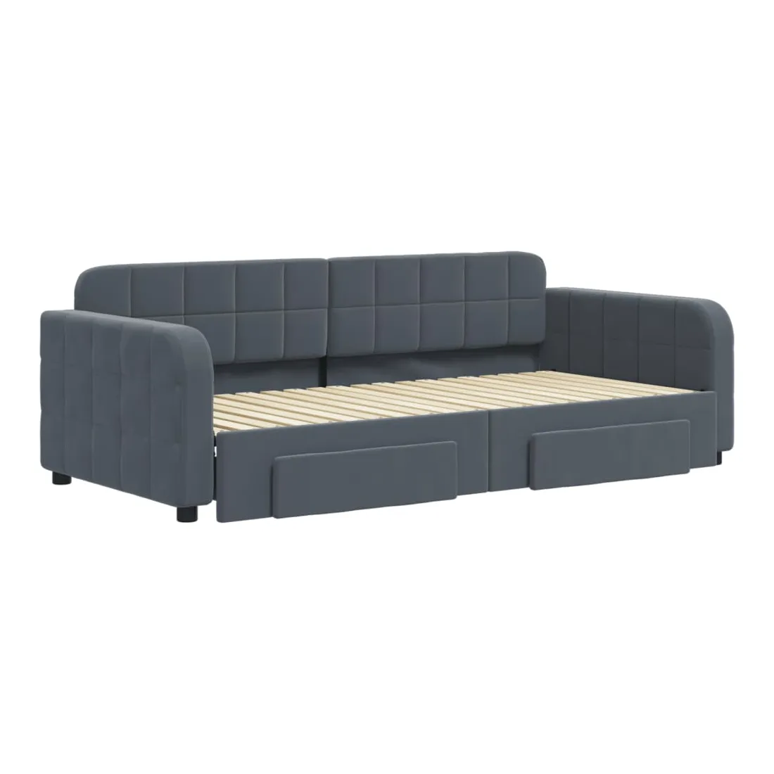 Ce lit de repos 2 en 1 avec lit gigogne, servant à la fois de canapé et de lit, constitue un supplément pratique et accrocheur à votre salon ou chambre à coucher. Lit de repos polyvalent : le canapé-lit fonctionne comme un canapé pendant la journée et se transforme facilement en lit double la nuit en retirant le lit gigogne, offrant une solution pratique pour accueillir des invités et maximiser l'espace. Grand espace de rangement : ce lit d'appoint dispose de deux tiroirs à roulettes qui offrent suffisamment d'espace pour ranger vos vêtements, chaussettes, jouets, coussins, etc.Velours doux et construction solide : ce canapé-lit a un cadre robuste en bois et en métal et est recouvert de velours doux et confortable. Bon à savoir :Les matelas ne sont pas inclus avec ce lit. Nous proposons une sélection variée de matelas. Vous pouvez consulter notre boutique pour trouver les matelas assortis.