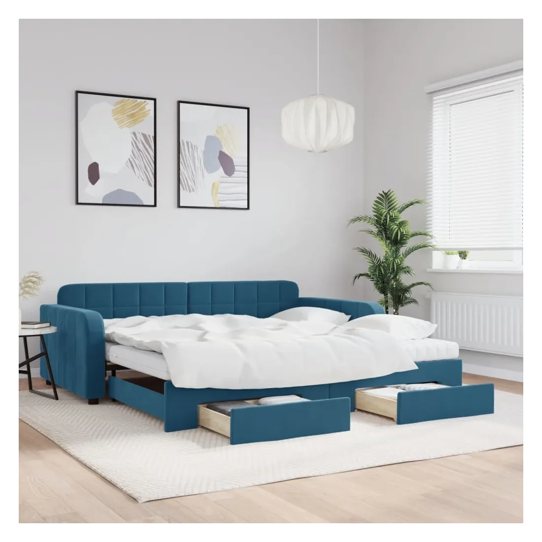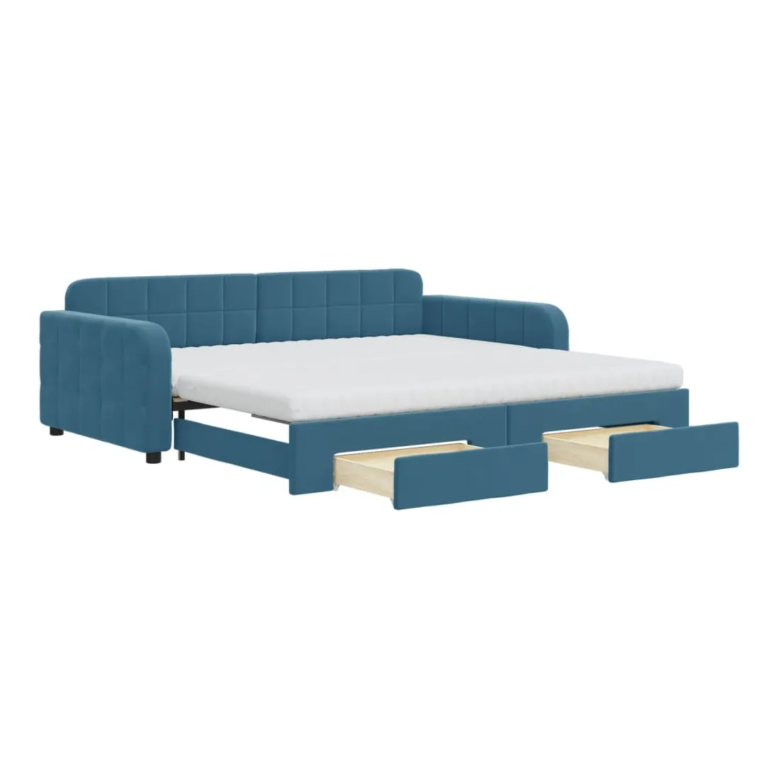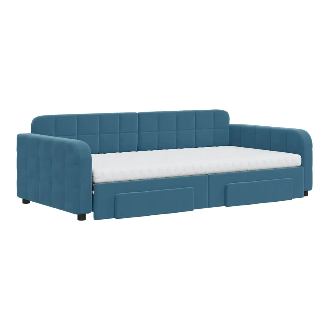 Ce lit de repos 2 en 1 avec lit gigogne, servant à la fois de canapé et de lit, constitue un supplément pratique et accrocheur à votre salon ou chambre à coucher. Lit de repos polyvalent : le canapé-lit fonctionne comme un canapé pendant la journée et se transforme facilement en lit double la nuit en retirant le lit gigogne, offrant une solution pratique pour accueillir des invités et maximiser l'espace.Grand espace de rangement : ce lit d'appoint dispose de deux tiroirs à roulettes qui offrent suffisamment d'espace pour ranger vos vêtements, chaussettes, jouets, coussins, etc.Matelas en mousse confortable : ce lit est fourni avec deux matelas en mousse pour un soutien maximal et un confort optimal.Velours doux et construction solide : ce canapé-lit a un cadre robuste en bois et en métal et est recouvert de velours doux et confortable.