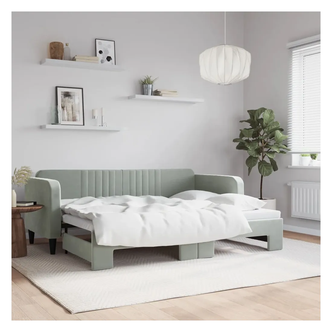 Ce lit de repos 2 en 1 avec lit gigogne, servant à la fois de canapé et de lit, constitue un supplément pratique et accrocheur à votre salon ou chambre à coucher. Lit de repos polyvalent : le canapé-lit fonctionne comme un canapé pendant la journée et se transforme facilement en lit double la nuit en retirant le lit gigogne, offrant une solution pratique pour accueillir des invités et maximiser l'espace.Velours doux et construction solide : ce canapé-lit a un cadre robuste en bois et en métal et est recouvert de velours doux et confortable.Design moderne : le canapé-lit a un design moderne qui présente des lignes épurées, un aspect minimaliste, ainsi que de la lumière naturelle, et ajoutera un style moderne à votre intérieur ! Bon à savoir :Les matelas ne sont pas inclus avec ce lit. Nous proposons une sélection variée de matelas. Vous pouvez consulter notre boutique pour trouver les matelas assortis.