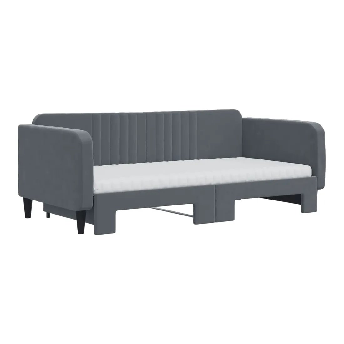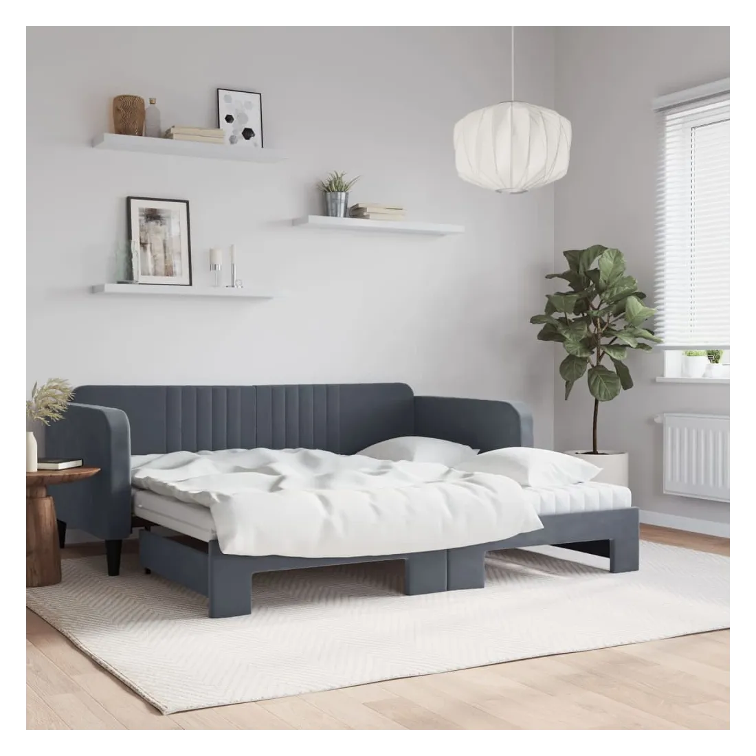 Ce lit de repos 2 en 1 avec lit gigogne, servant à la fois de canapé et de lit, constitue un supplément pratique et accrocheur à votre salon ou chambre à coucher. Lit de repos polyvalent : le canapé-lit fonctionne comme un canapé pendant la journée et se transforme facilement en lit double la nuit en retirant le lit gigogne, offrant une solution pratique pour accueillir des invités et maximiser l'espace.Matelas en mousse confortable : ce lit est fourni avec deux matelas en mousse pour un soutien maximal et un confort optimal.Velours doux et construction solide : ce canapé-lit a un cadre robuste en bois et en métal et est recouvert de velours doux et confortable.Design moderne : le canapé-lit a un design moderne qui présente des lignes épurées, un aspect minimaliste, ainsi que de la lumière naturelle, et ajoutera un style moderne à votre intérieur !