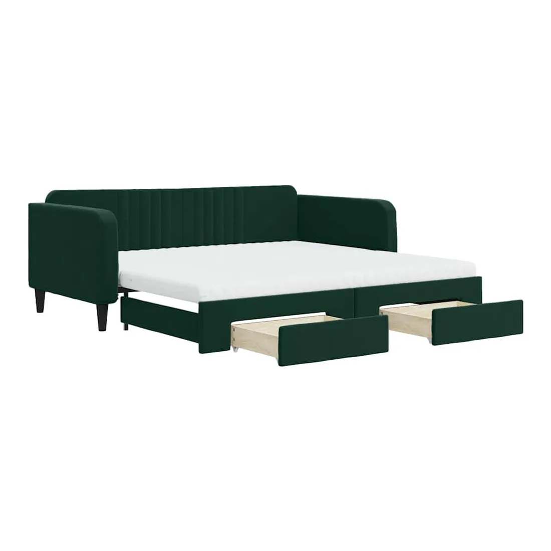 Ce lit de repos 2 en 1 avec lit gigogne, servant à la fois de canapé et de lit, constitue un supplément pratique et accrocheur à votre salon ou chambre à coucher. Lit de repos polyvalent : le canapé-lit fonctionne comme un canapé pendant la journée et se transforme facilement en lit double la nuit en retirant le lit gigogne, offrant une solution pratique pour accueillir des invités et maximiser l'espace.Grand espace de rangement : ce lit d'appoint dispose de deux tiroirs à roulettes qui offrent suffisamment d'espace pour ranger vos vêtements, chaussettes, jouets, coussins, etc.Matelas en mousse confortable : ce lit est fourni avec deux matelas en mousse pour un soutien maximal et un confort optimal.Velours doux et construction solide : ce canapé-lit a un cadre robuste en bois et en métal et est recouvert de velours doux et confortable.