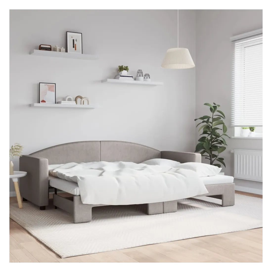 Ce lit de repos 2 en 1 avec lit gigogne, servant à la fois de canapé et de lit, constitue un supplément pratique et accrocheur à votre salon ou chambre à coucher. Lit de repos polyvalent : le canapé-lit fonctionne comme un canapé pendant la journée et se transforme facilement en lit double la nuit en retirant le lit gigogne, offrant une solution pratique pour accueillir des invités et maximiser l'espace.Tissu durable et construction solide : ce canapé-lit a une structure robuste en bois et en métal et est recouvert d'un tissu durable et confortable.Design moderne : le canapé-lit a un design moderne qui présente des lignes épurées, un aspect minimaliste, ainsi que de la lumière naturelle, et ajoutera un style moderne à votre intérieur ! Bon à savoir :Les matelas ne sont pas inclus avec ce lit. Nous proposons une sélection variée de matelas. Vous pouvez consulter notre boutique pour trouver les matelas assortis.