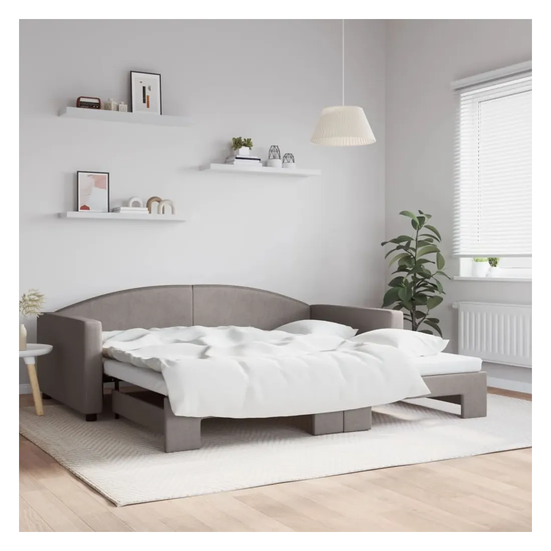Ce lit de repos 2 en 1 avec lit gigogne, servant à la fois de canapé et de lit, constitue un supplément pratique et accrocheur à votre salon ou chambre à coucher. Lit de repos polyvalent : le canapé-lit fonctionne comme un canapé pendant la journée et se transforme facilement en lit double la nuit en retirant le lit gigogne, offrant une solution pratique pour accueillir des invités et maximiser l'espace.Tissu durable et construction solide : ce canapé-lit a une structure robuste en bois et en métal et est recouvert d'un tissu durable et confortable.Design moderne : le canapé-lit a un design moderne qui présente des lignes épurées, un aspect minimaliste, ainsi que de la lumière naturelle, et ajoutera un style moderne à votre intérieur ! Bon à savoir :Les matelas ne sont pas inclus avec ce lit. Nous proposons une sélection variée de matelas. Vous pouvez consulter notre boutique pour trouver les matelas assortis.
