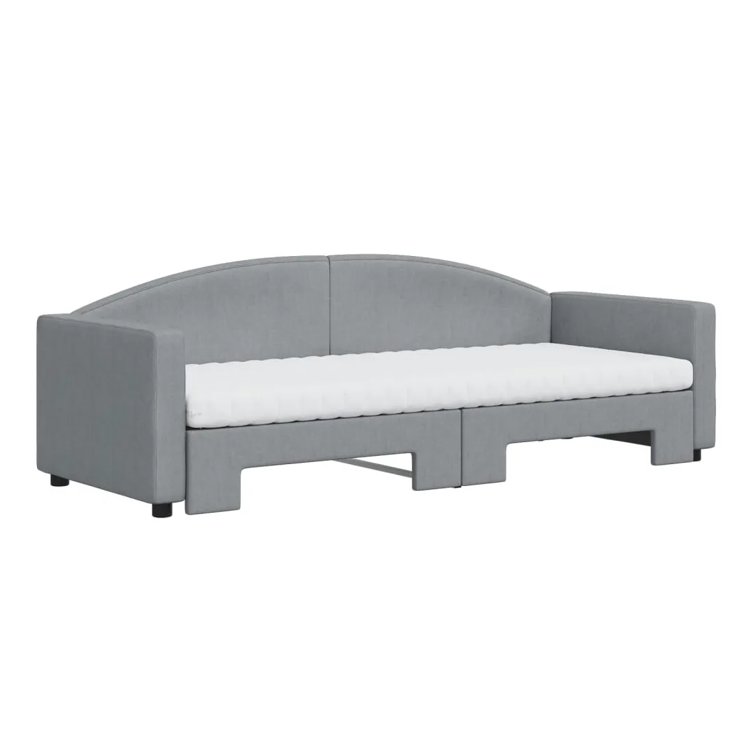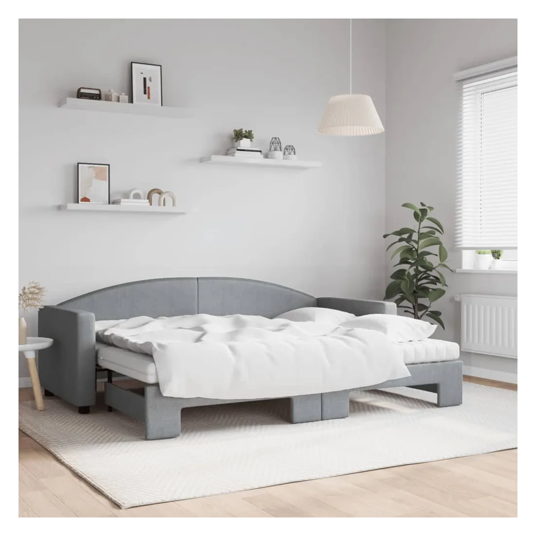 Ce lit de repos 2 en 1 avec lit gigogne, servant à la fois de canapé et de lit, constitue un supplément pratique et accrocheur à votre salon ou chambre à coucher. Lit de repos polyvalent : le canapé-lit fonctionne comme un canapé pendant la journée et se transforme facilement en lit double la nuit en retirant le lit gigogne, offrant une solution pratique pour accueillir des invités et maximiser l'espace.Matelas en mousse confortable : ce lit est fourni avec deux matelas en mousse pour un soutien maximal et un confort optimal.Tissu durable et construction solide : ce canapé-lit a une structure robuste en bois et en métal et est recouvert d'un tissu durable et confortable.Design moderne : le canapé-lit a un design moderne qui présente des lignes épurées, un aspect minimaliste, ainsi que de la lumière naturelle, et ajoutera un style moderne à votre intérieur !