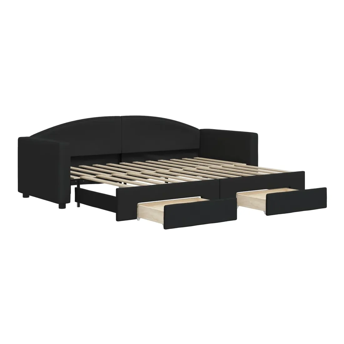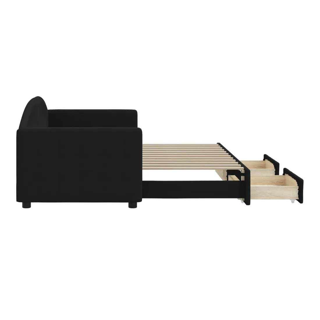 Ce lit de repos 2 en 1 avec lit gigogne, servant à la fois de canapé et de lit, constitue un supplément pratique et accrocheur à votre salon ou chambre à coucher. Lit de repos polyvalent : le canapé-lit fonctionne comme un canapé pendant la journée et se transforme facilement en lit double la nuit en retirant le lit gigogne, offrant une solution pratique pour accueillir des invités et maximiser l'espace.Grand espace de rangement : ce lit d'appoint dispose de deux tiroirs à roulettes qui offrent suffisamment d'espace pour ranger vos vêtements, chaussettes, jouets, coussins, etc.Tissu durable et construction solide : ce canapé-lit a une structure robuste en bois et en métal et est recouvert d'un tissu durable et confortable. Bon à savoir :Les matelas ne sont pas inclus avec ce lit. Nous proposons une sélection variée de matelas. Vous pouvez consulter notre boutique pour trouver les matelas assortis.