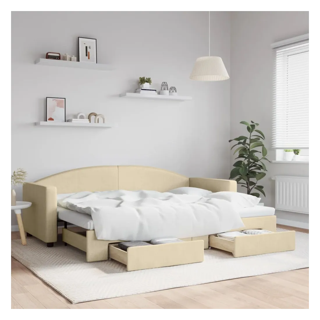 Ce lit de repos 2 en 1 avec lit gigogne, servant à la fois de canapé et de lit, constitue un supplément pratique et accrocheur à votre salon ou chambre à coucher. Lit de repos polyvalent : le canapé-lit fonctionne comme un canapé pendant la journée et se transforme facilement en lit double la nuit en retirant le lit gigogne, offrant une solution pratique pour accueillir des invités et maximiser l'espace.Grand espace de rangement : ce lit d'appoint dispose de deux tiroirs à roulettes qui offrent suffisamment d'espace pour ranger vos vêtements, chaussettes, jouets, coussins, etc.Tissu durable et construction solide : ce canapé-lit a une structure robuste en bois et en métal et est recouvert d'un tissu durable et confortable. Bon à savoir :Les matelas ne sont pas inclus avec ce lit. Nous proposons une sélection variée de matelas. Vous pouvez consulter notre boutique pour trouver les matelas assortis.