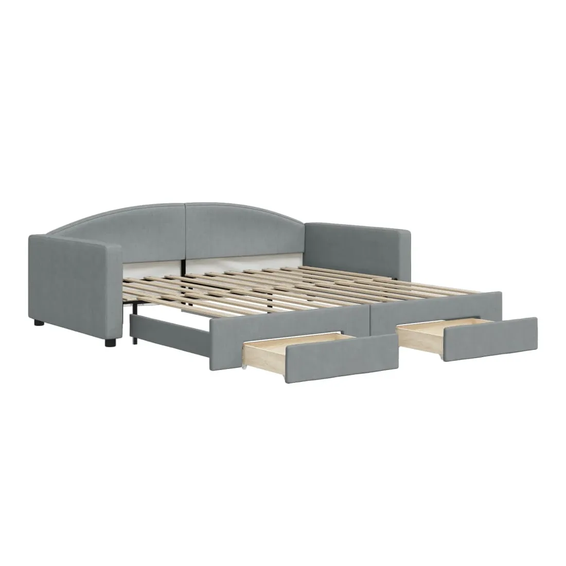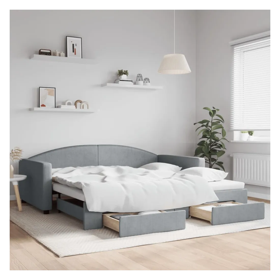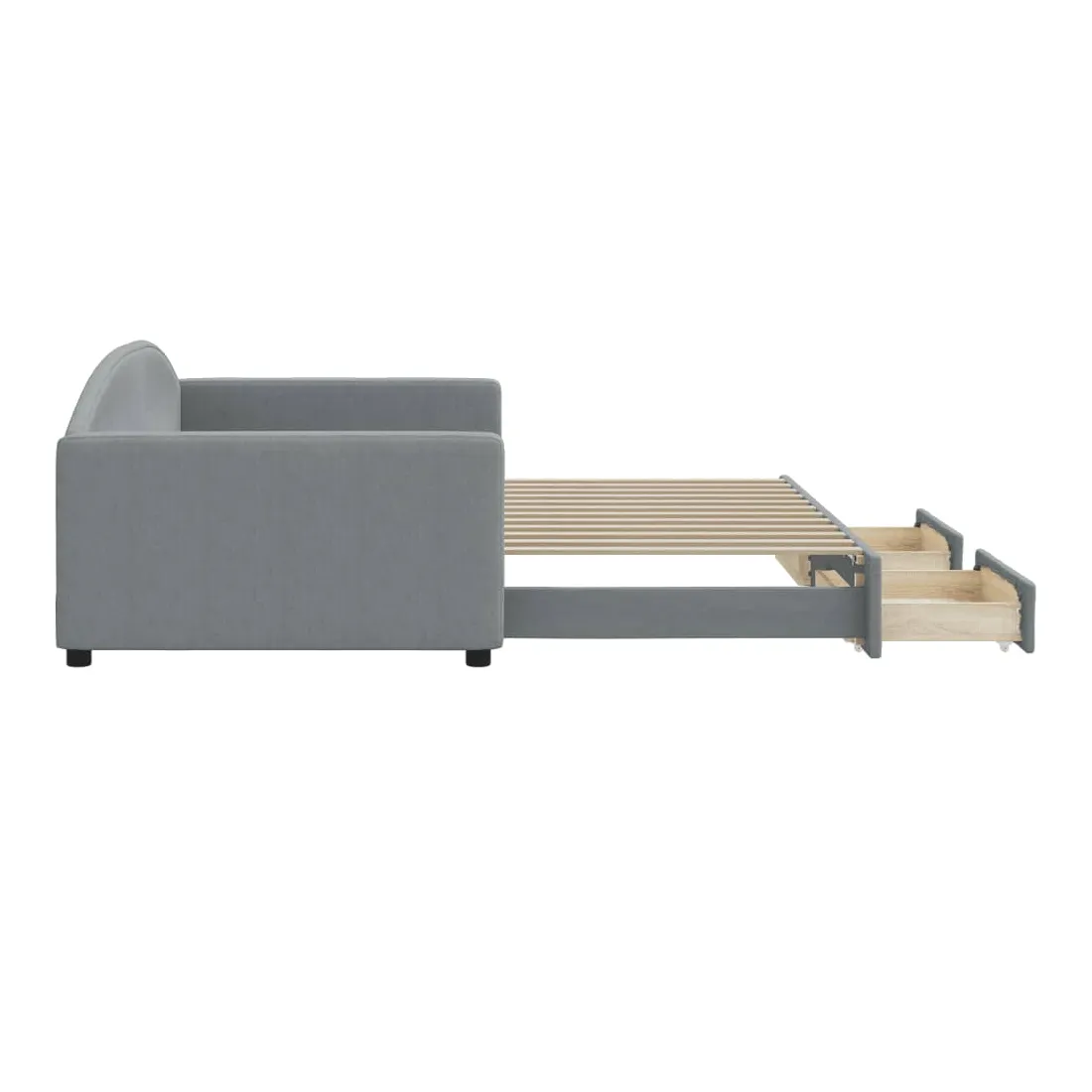 Ce lit de repos 2 en 1 avec lit gigogne, servant à la fois de canapé et de lit, constitue un supplément pratique et accrocheur à votre salon ou chambre à coucher. Lit de repos polyvalent : le canapé-lit fonctionne comme un canapé pendant la journée et se transforme facilement en lit double la nuit en retirant le lit gigogne, offrant une solution pratique pour accueillir des invités et maximiser l'espace.Grand espace de rangement : ce lit d'appoint dispose de deux tiroirs à roulettes qui offrent suffisamment d'espace pour ranger vos vêtements, chaussettes, jouets, coussins, etc.Tissu durable et construction solide : ce canapé-lit a une structure robuste en bois et en métal et est recouvert d'un tissu durable et confortable. Bon à savoir :Les matelas ne sont pas inclus avec ce lit. Nous proposons une sélection variée de matelas. Vous pouvez consulter notre boutique pour trouver les matelas assortis.